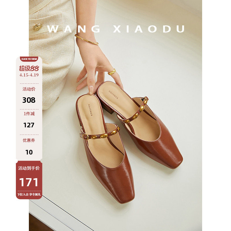 📚 原创【王小毒】小金豆●复古包头拖女夏季通勤小方头半拖穆勒单鞋