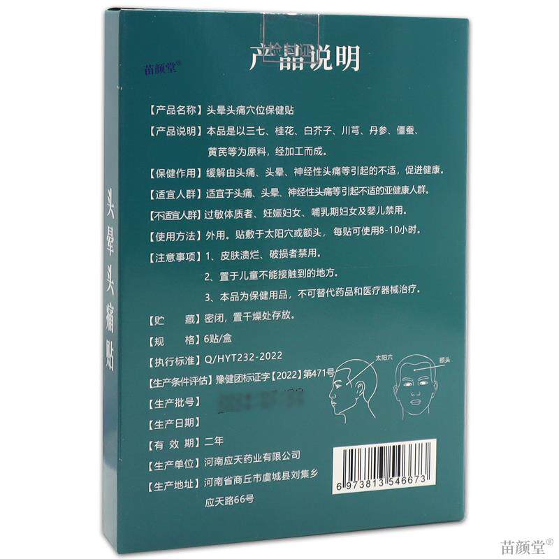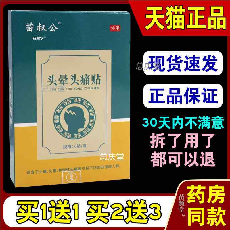 📚 苗叔公头晕头痛贴穴位保健贴6贴/盒【天猫正品】神经头痛头晕引起