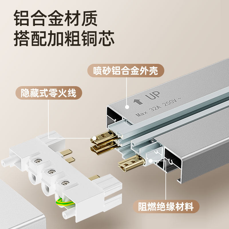 📚 新可兰轨道插座升级款带插头线带开关6000w大功率轨道厨房餐边柜