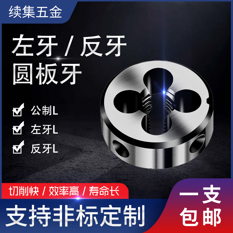📚 不锈钢牙板套丝L倒牙反牙左扣反扣左牙圆板牙6 8 12 16 48*1.5*2
