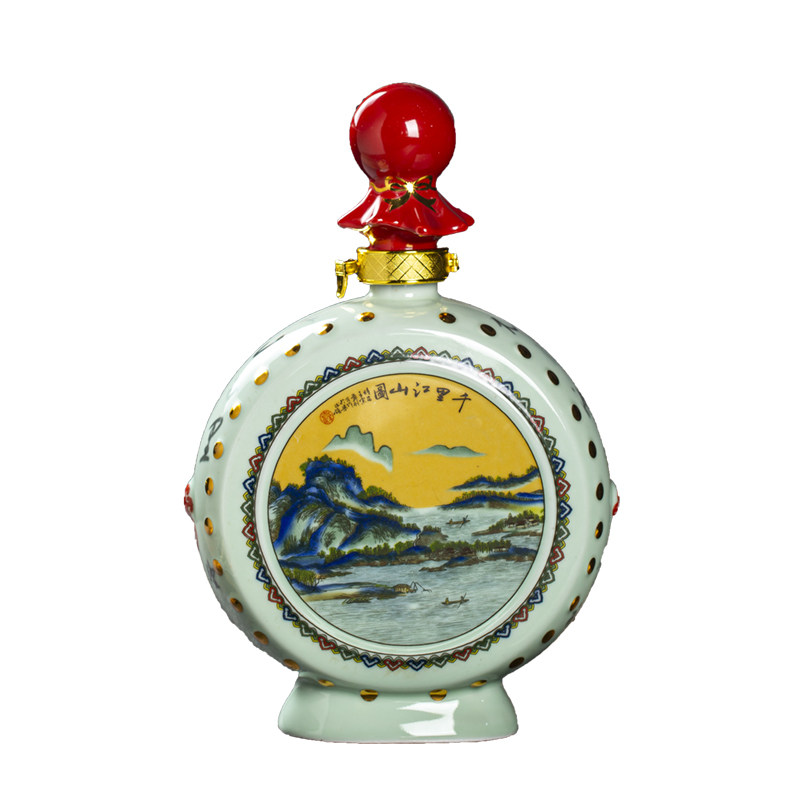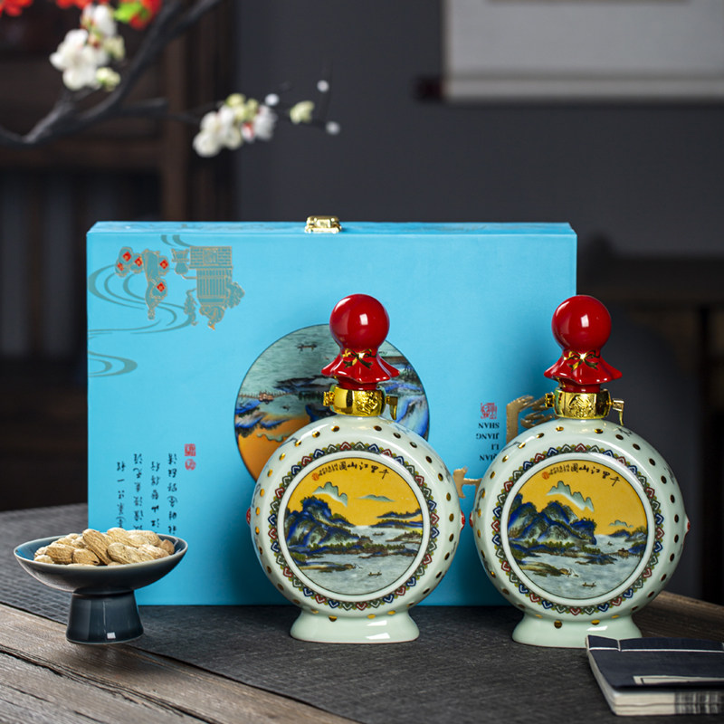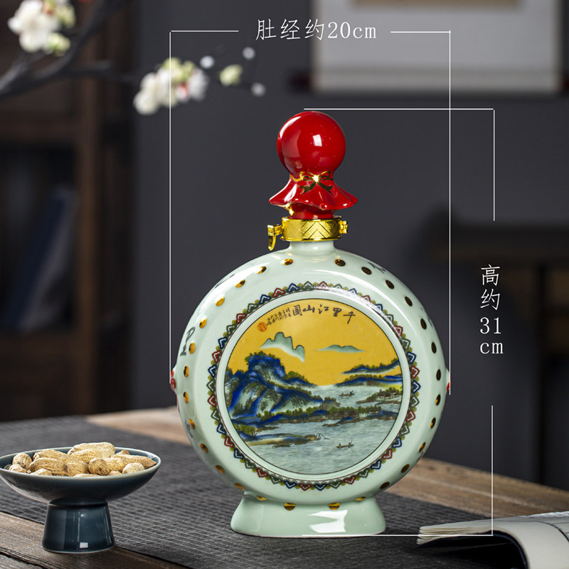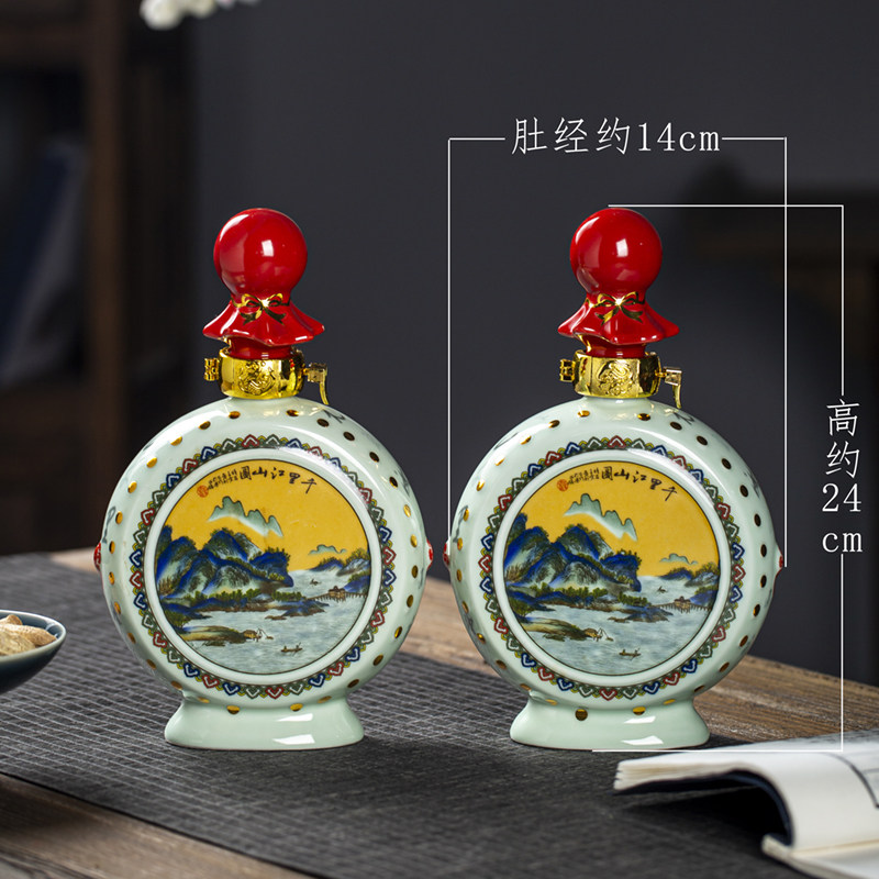 📚 千里江山图景德镇陶瓷空酒瓶1斤3斤带礼盒送礼家用存酒密封罐酒坛