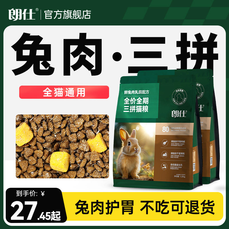 📚 朗仕猫粮幼猫成猫营养鲜兔肉乳鸽鸡肉冻干蛋黄益生元布偶英短猫粮
