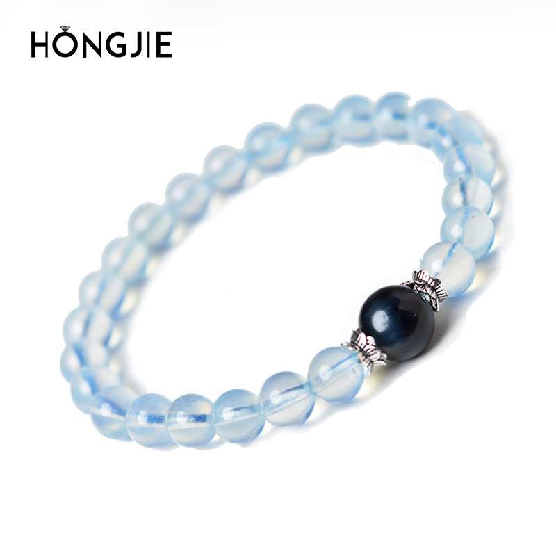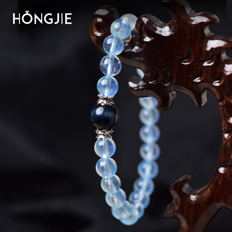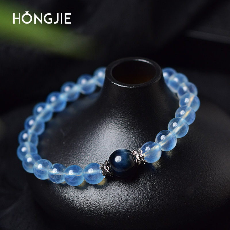 📚 海蓝宝手串女男东海宝蓝水晶玛瑙玉髓玉石散珠子蓝虎睛石单珠手链