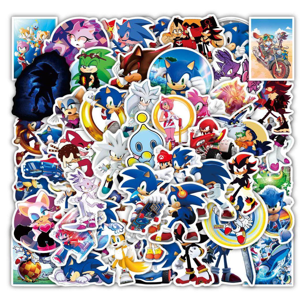 📚 150张超音鼠sonic超级索尼克卡通贴纸可爱动画涂鸦文具滑板车贴画