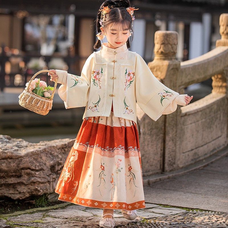 📚 汉服女童春秋中国风襦裙儿童日常长袖古装明制马面裙女宝唐装大袖