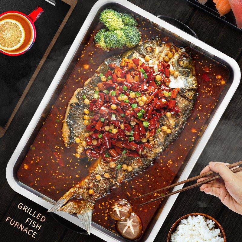 📚 加厚黑钢商用饭厅烤鱼炉不锈钢不粘烤鱼盘碳烤炉木炭长方形酒精炉