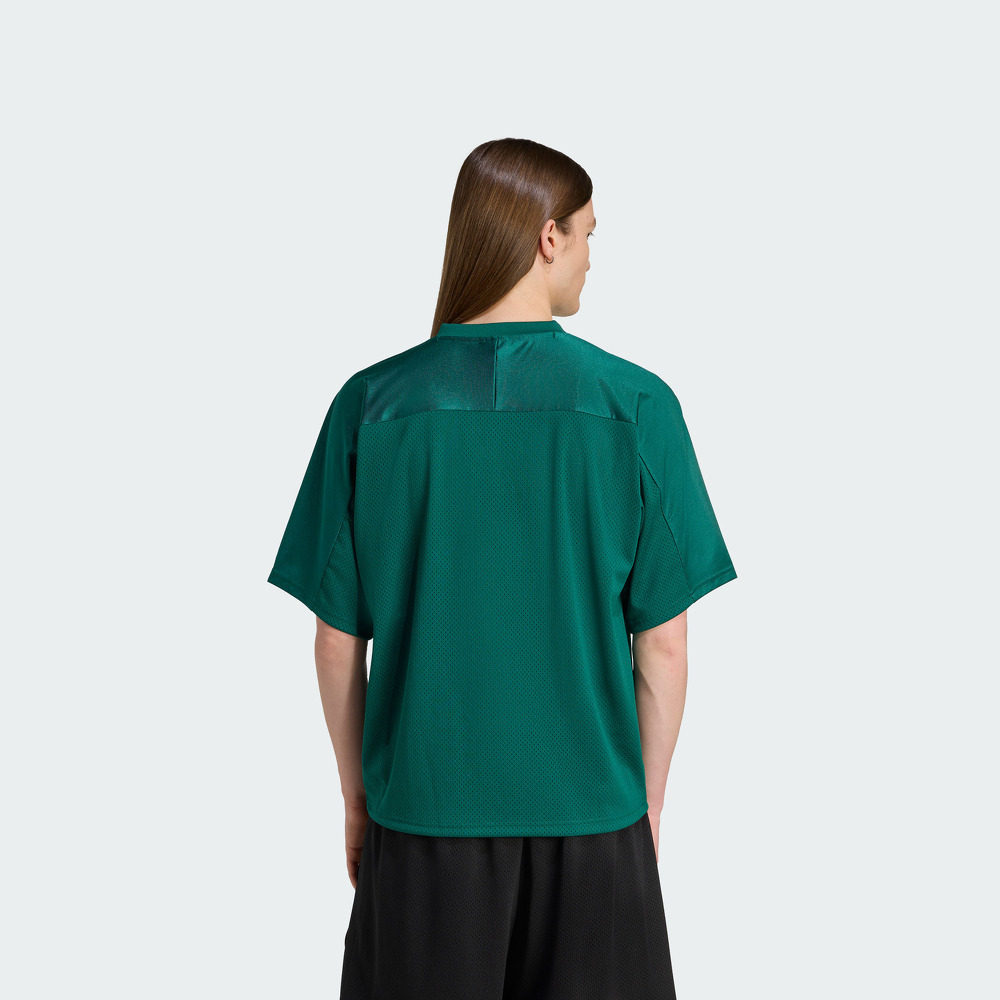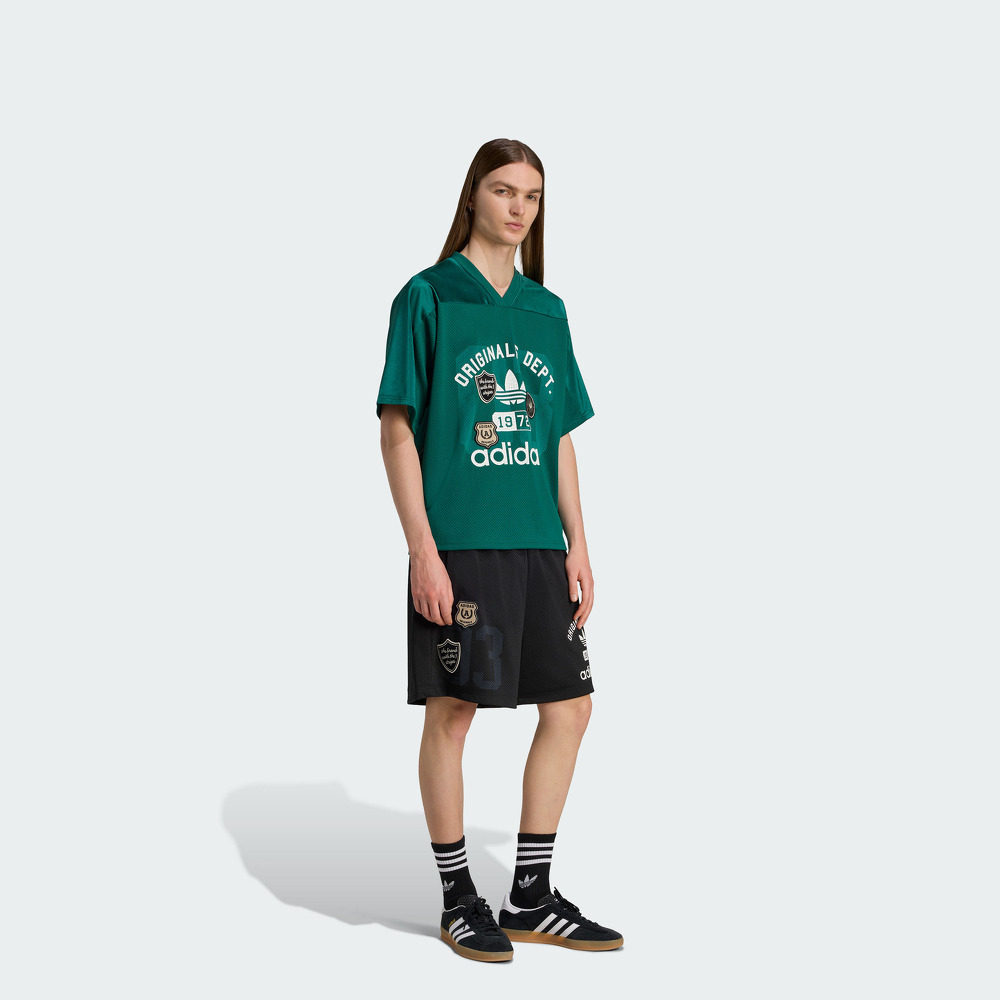 📚 复古印花美式校园风V领宽松短袖球衣男夏季adidas阿迪达斯三叶草