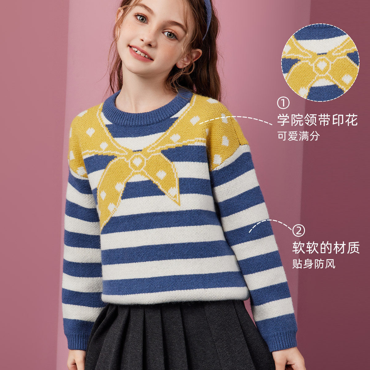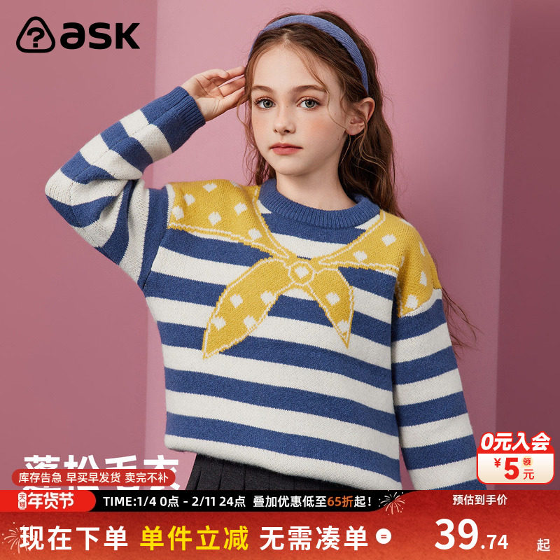 📚 【毛衣清仓合集】ask儿童毛衣2026冬季新款女童假两件条纹针织衫