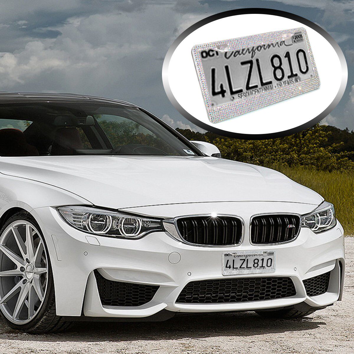 📚 Car type diamond cutting rhinestone license plate frame - cu