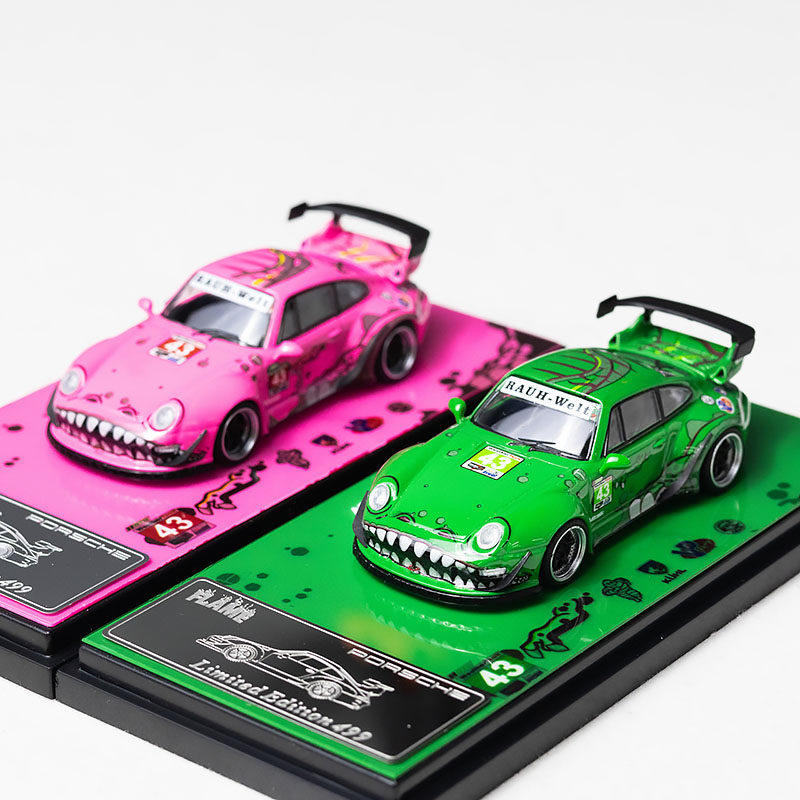 📚 现货 Flame 1:64 保时捷 RWB 993 恐龙涂装 仿真合金汽车模型收藏