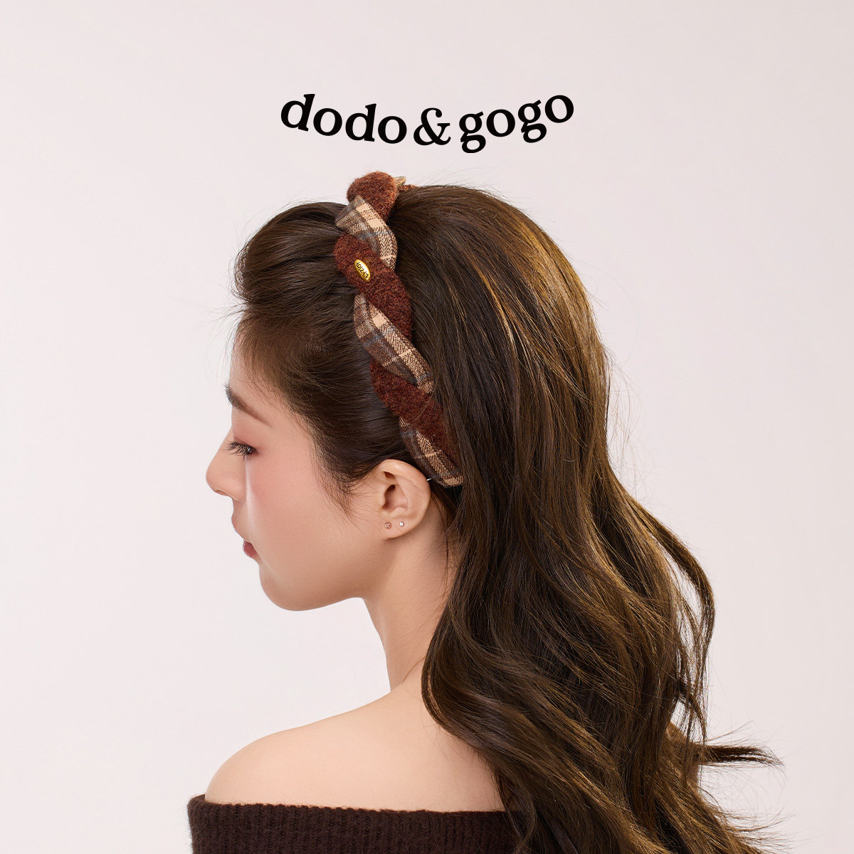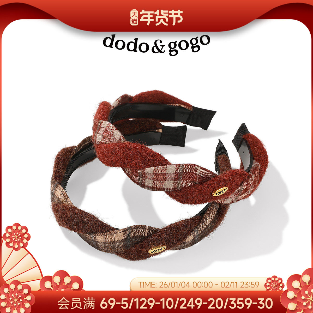 📚 DODOGOGO复古毛呢格子洗脸发箍女款2026新款气质新年红色头箍发饰