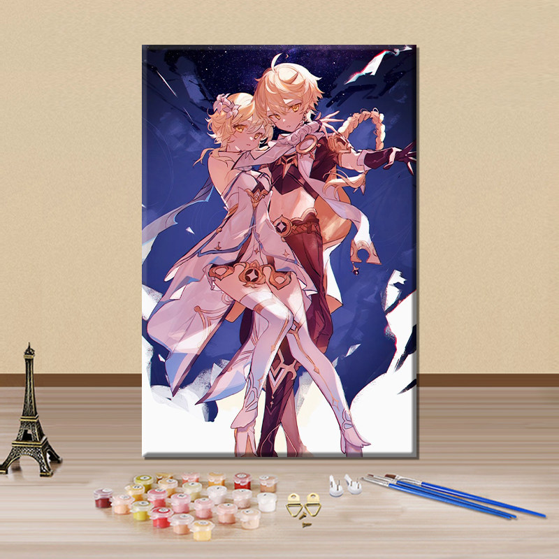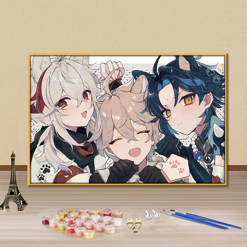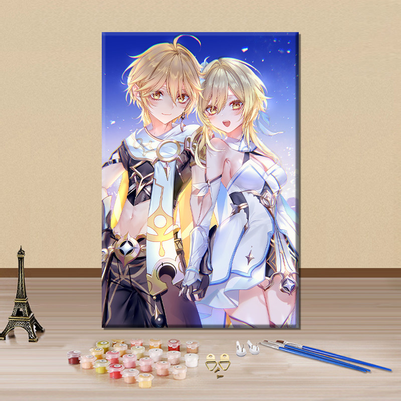 📚 原神数字油画diy填色画旅行者空手绘涂色油彩画手工定制房间挂画