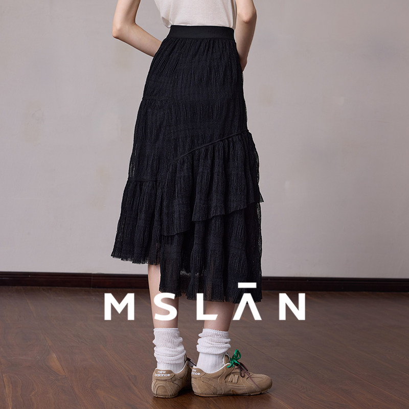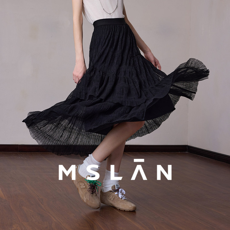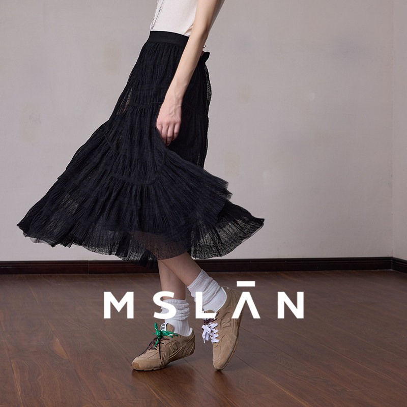 📚 飘逸蕾丝/MSLAN26春镂空网纱裙 黑色复古中裙半身裙MFDE8205