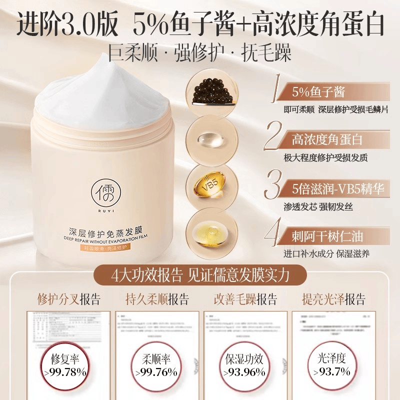 📚 儒意鱼子酱免蒸发膜补水顺滑修护干枯改善毛躁护发素女柔顺修护
