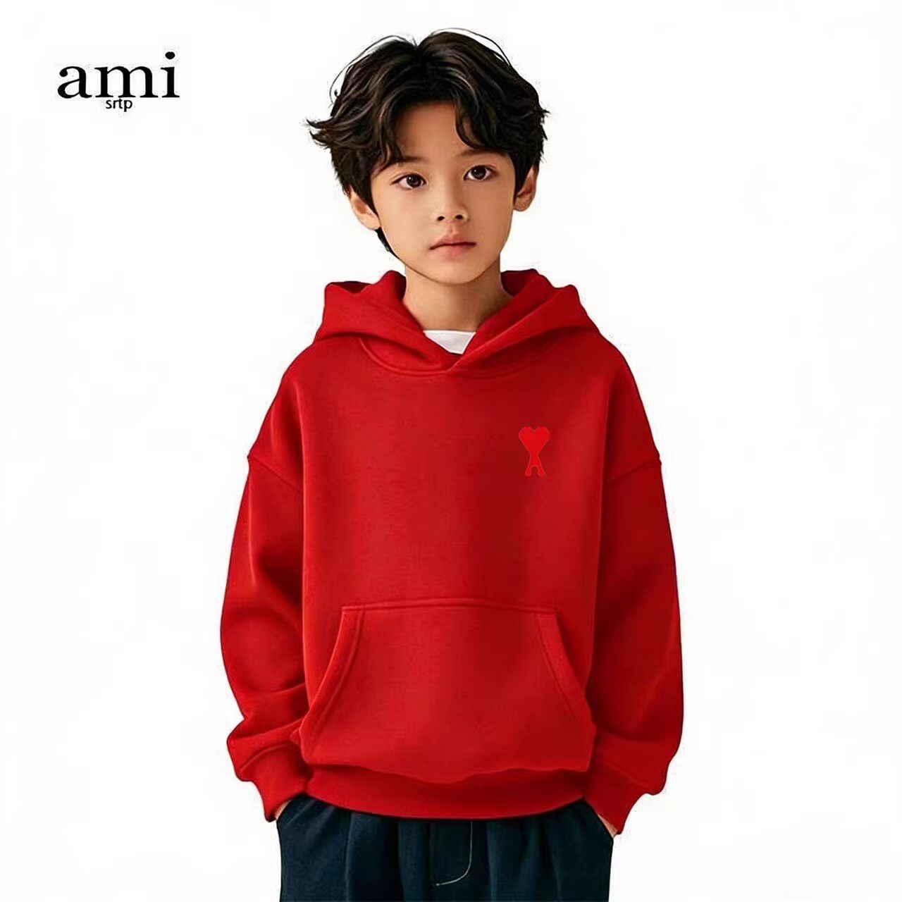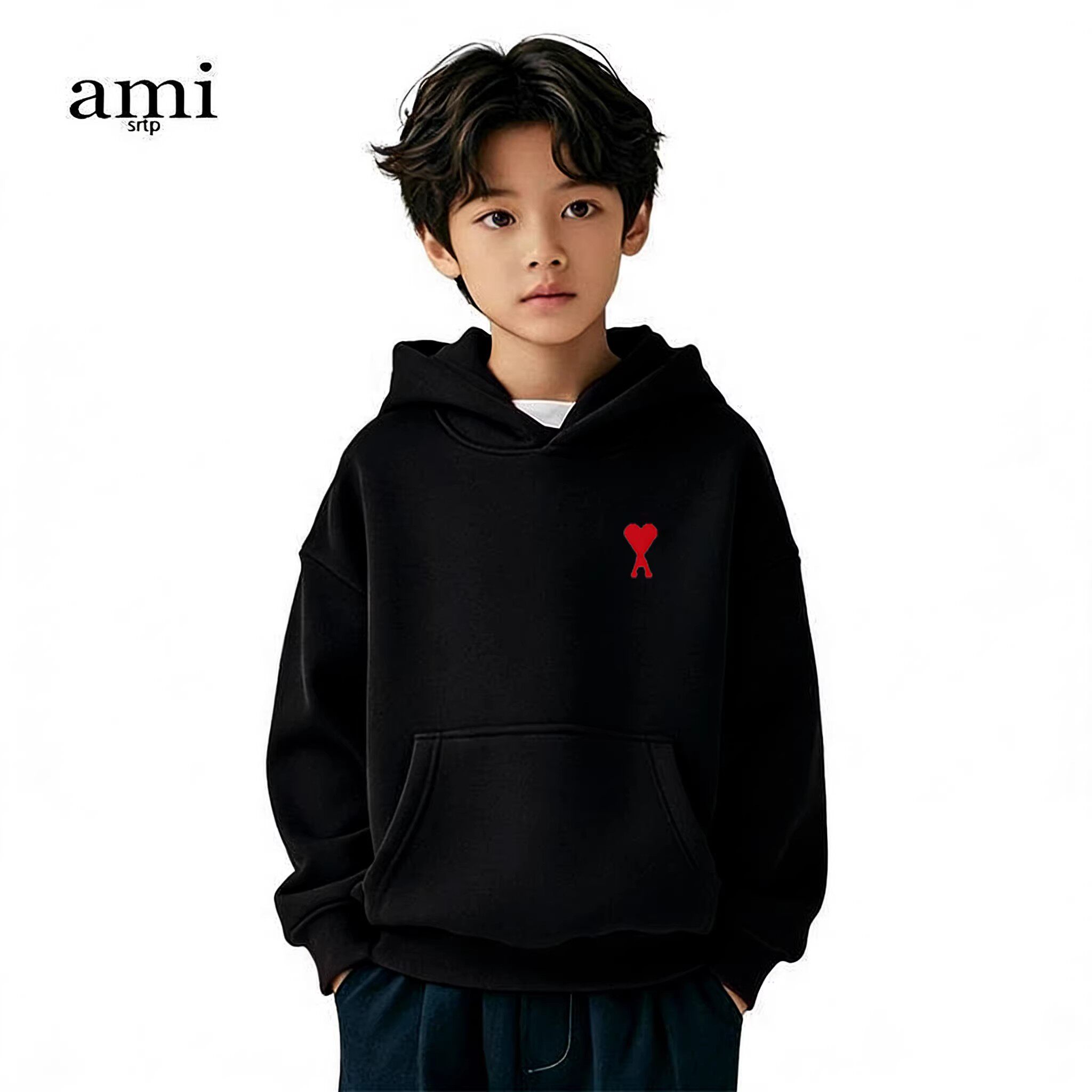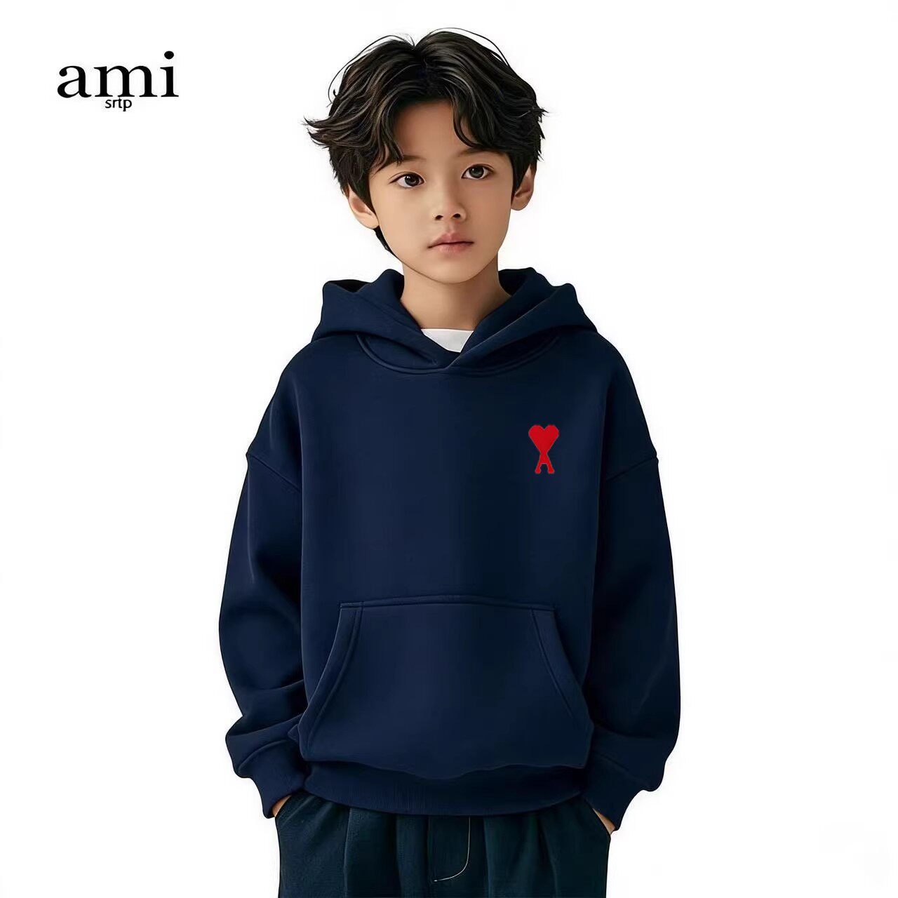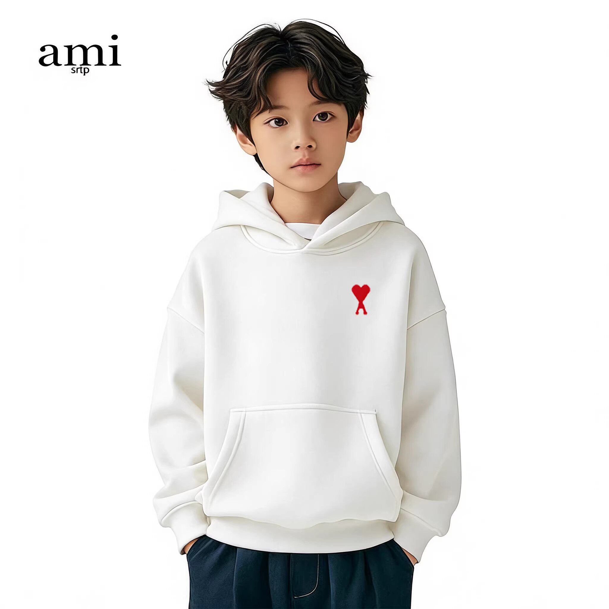 📚 官方Ami srtp儿童白色连帽卫衣男女童春秋季长袖2026新款亲子装
