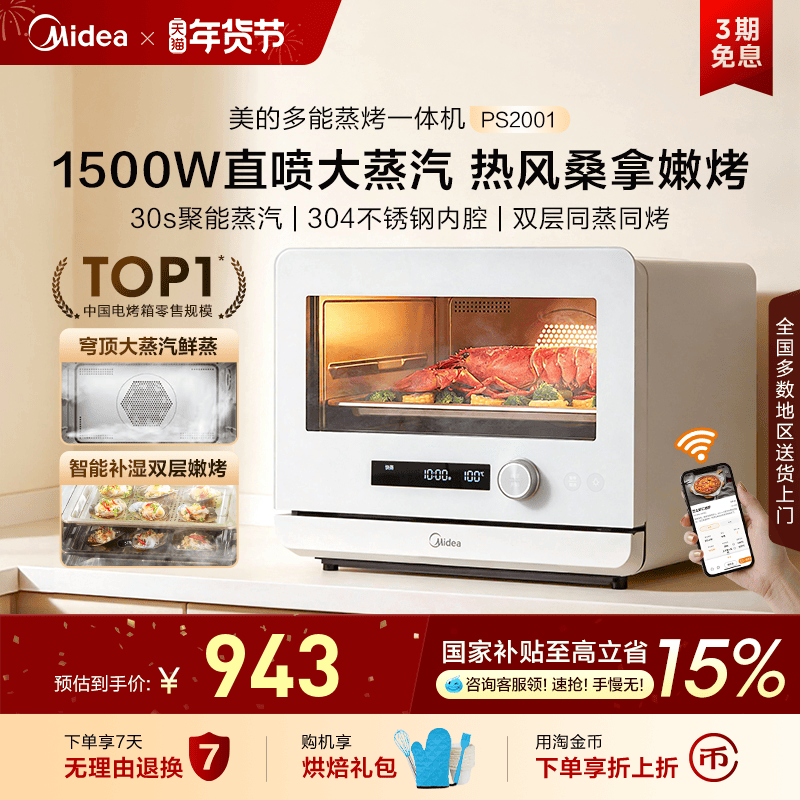 17¥ HU006 fPORUi5oMJ8¥ https://m.tb.cn/h.7INdXk0 美的蒸烤一体机PS2001台式家用电烤箱电蒸箱空气炸锅多功能蒸烤箱 --------------------- 【原售价】2,599元 【现售价】2,100元。