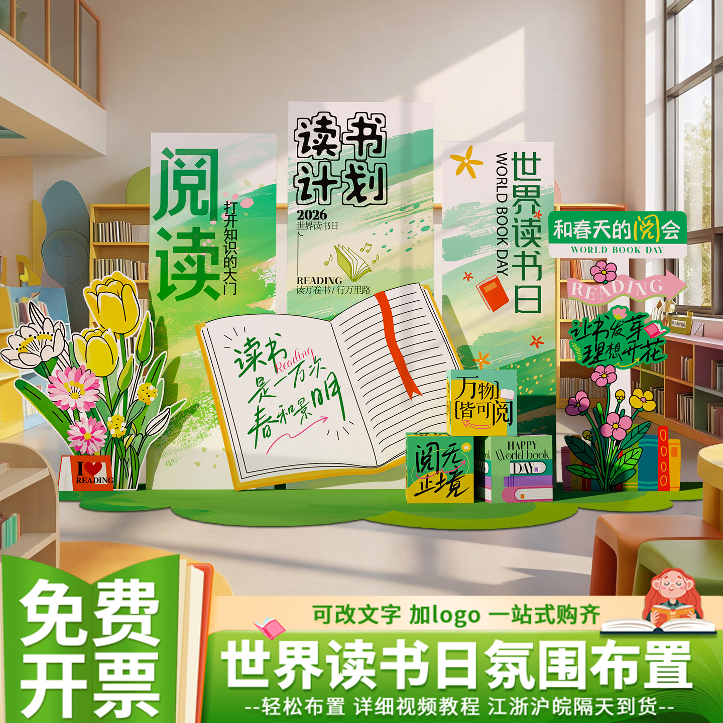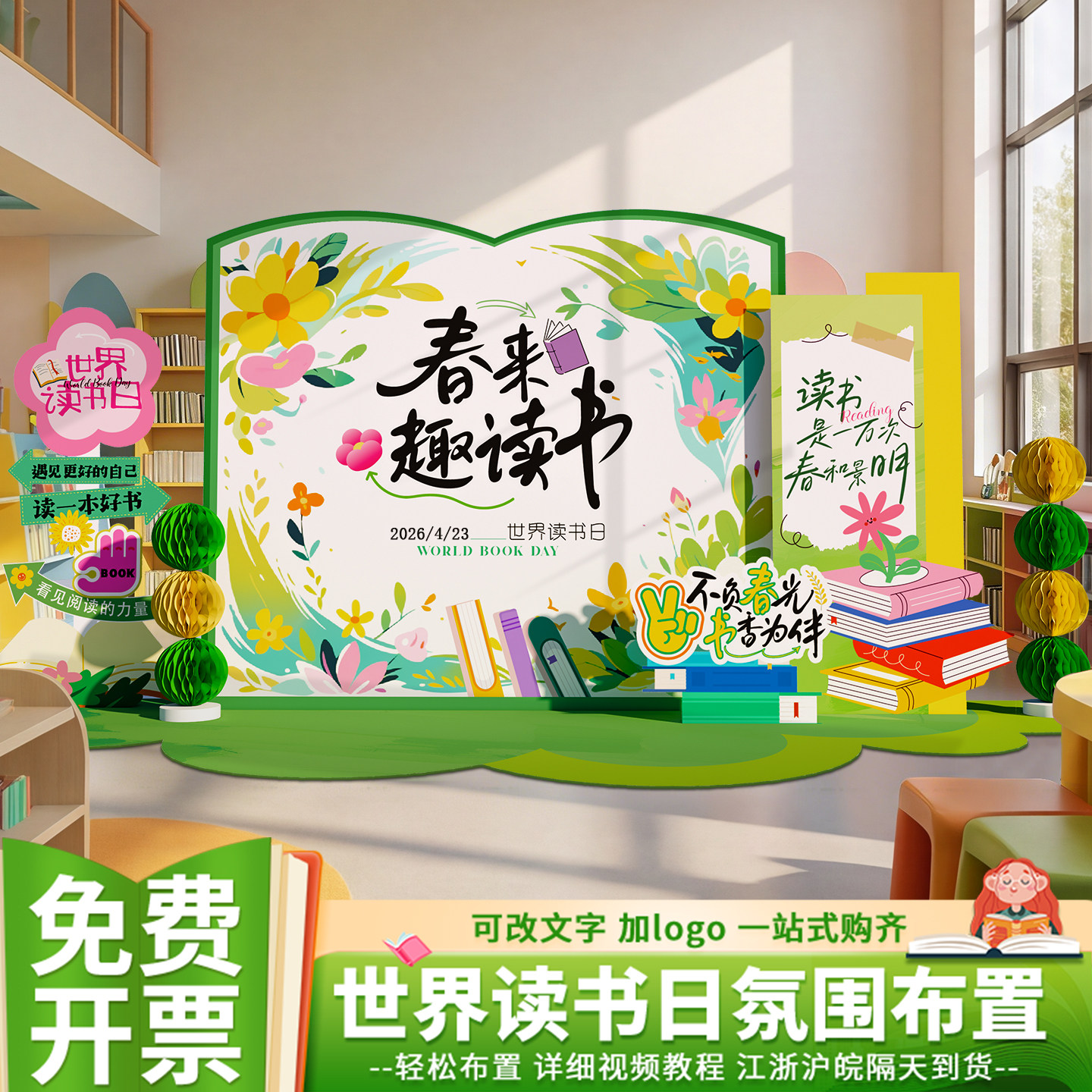 📚 世界读书日会场景布置氛围装饰阅读月书香六一幼儿园背景墙kt展板