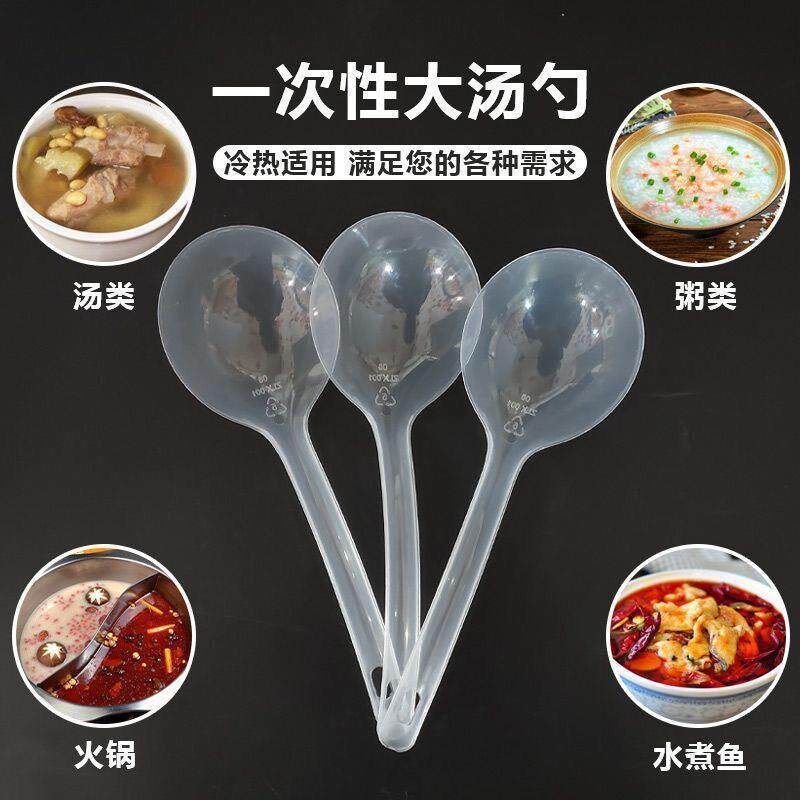 📚 独立包装大公勺一次性黑色大汤勺外卖火锅勺盛粥稀饭加厚长柄