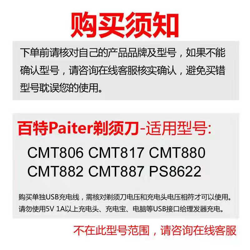 📚 Paiter百特CMT817 882 887 880 806剃须刀充电器线通用刮胡刀配件