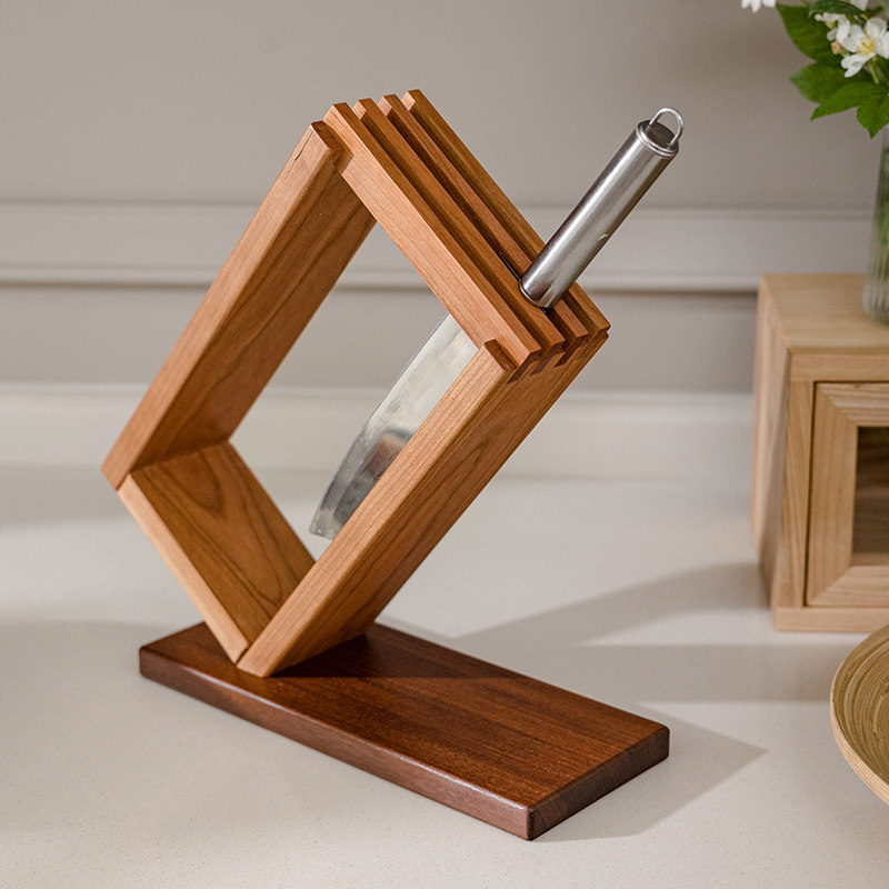📚 掬涵实木刀架厨房刀具置物架刀座收纳架多功能家用日式菜刀架子