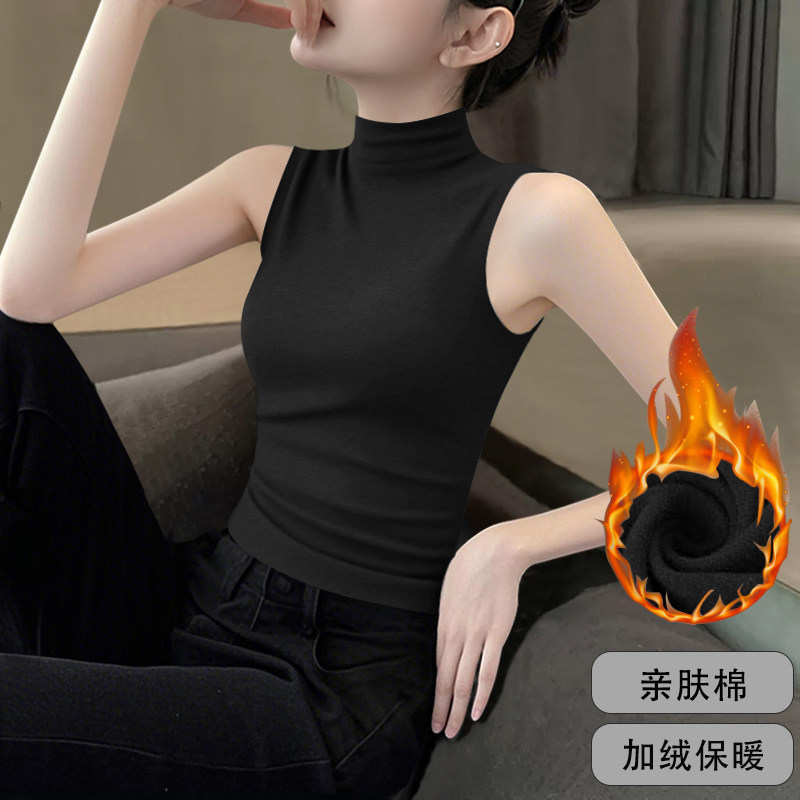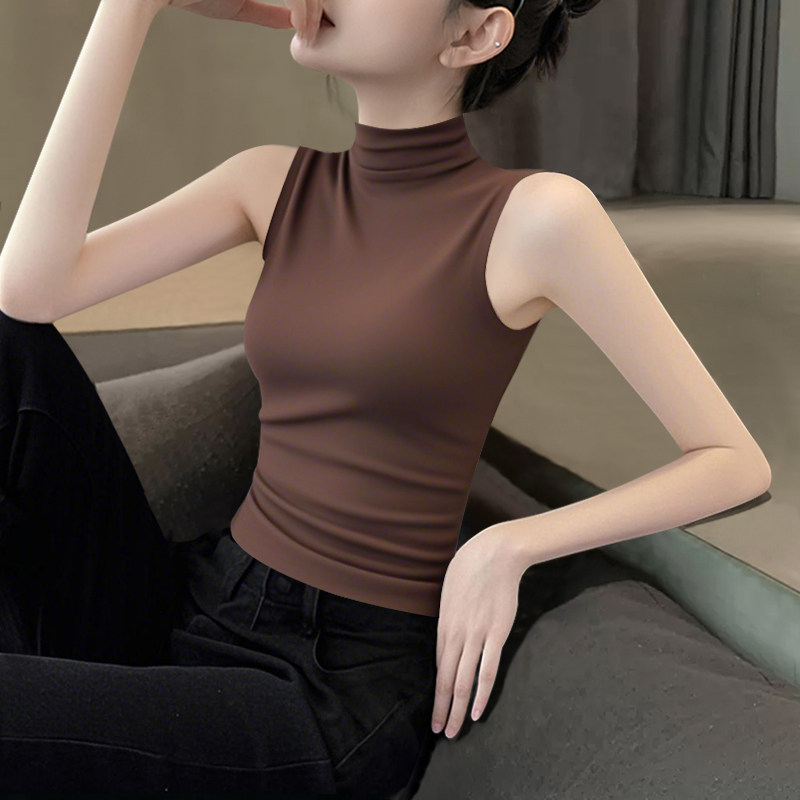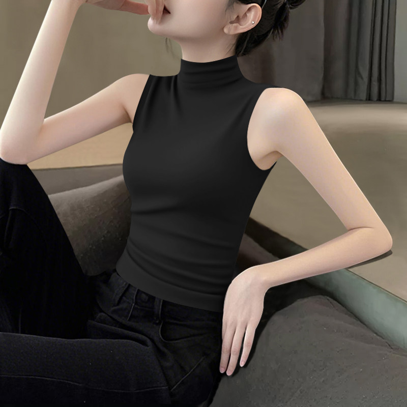 📚 莫代尔夏季新款半高领白色短款打底内搭女吊带背心紧身小众无袖潮