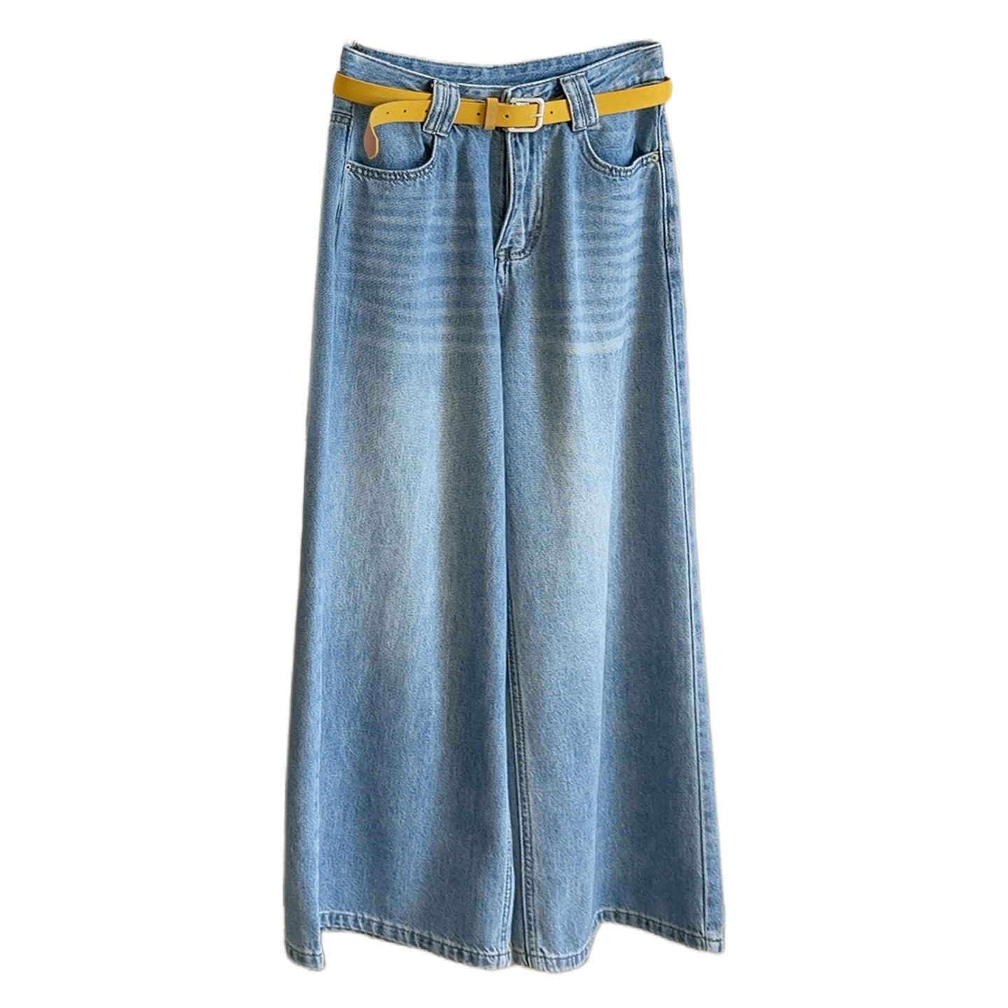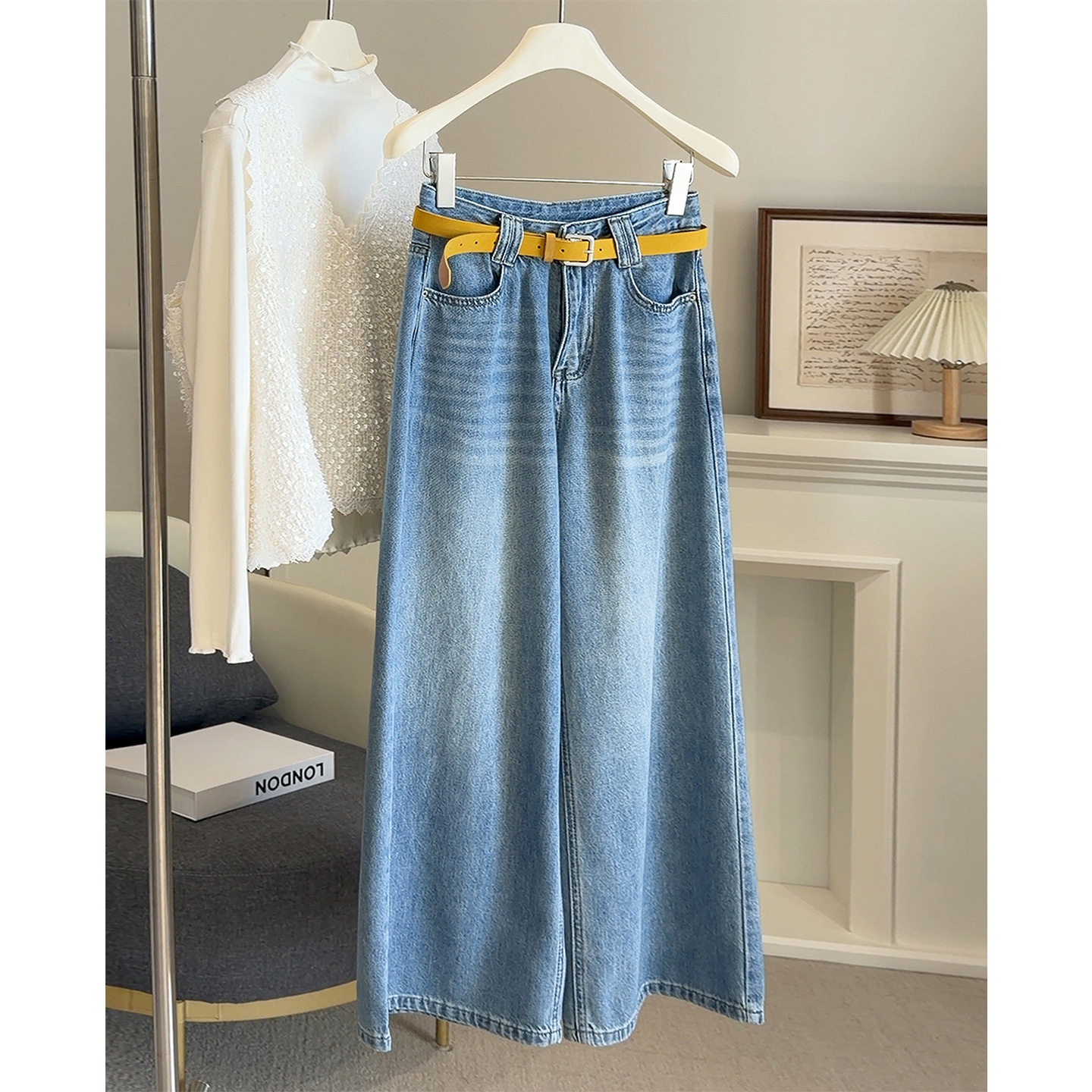 📚 韩系简约小个子十分牛仔裤女春2026新款宽松高腰显瘦直筒阔腿长裤