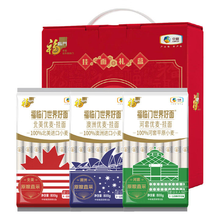 📚 福临门挂面礼盒2.4kg世界好面澳洲优麦面条早餐速食筋道节日送礼