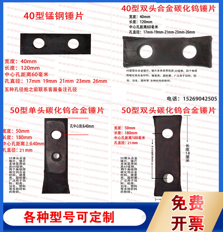 📚 粉碎机锤片碳化钨合金耐磨锤片甩片打片饲料粉碎机合金刀片