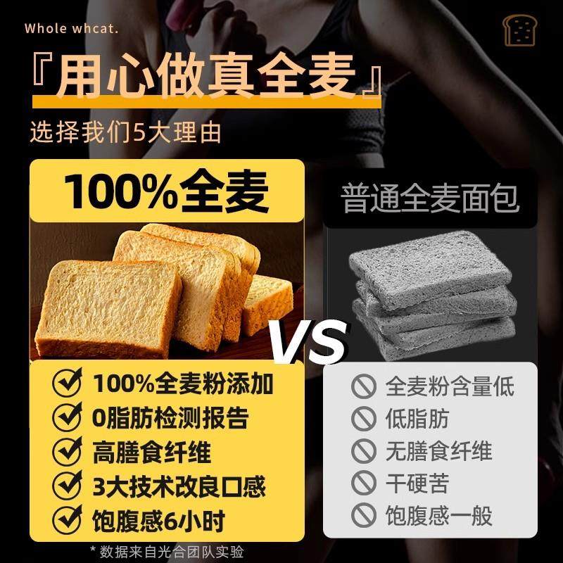 📚 光合力量0脂肪全麦面包无蔗糖粗粮代餐饱腹低脂独立包装黑麦吐司
