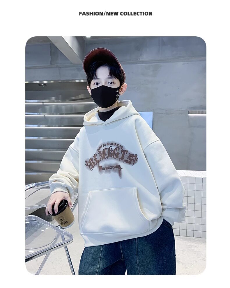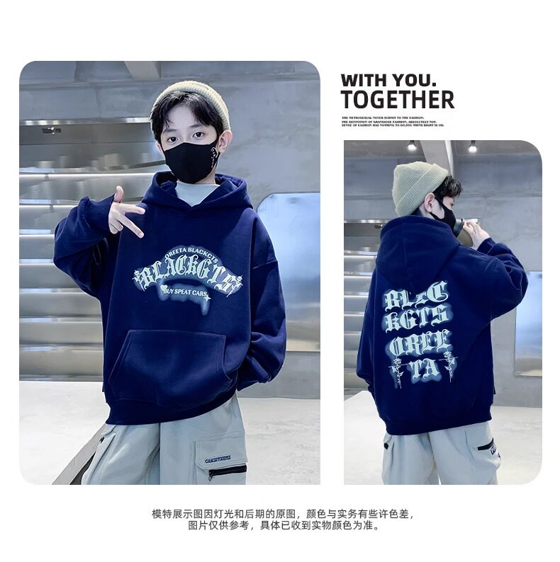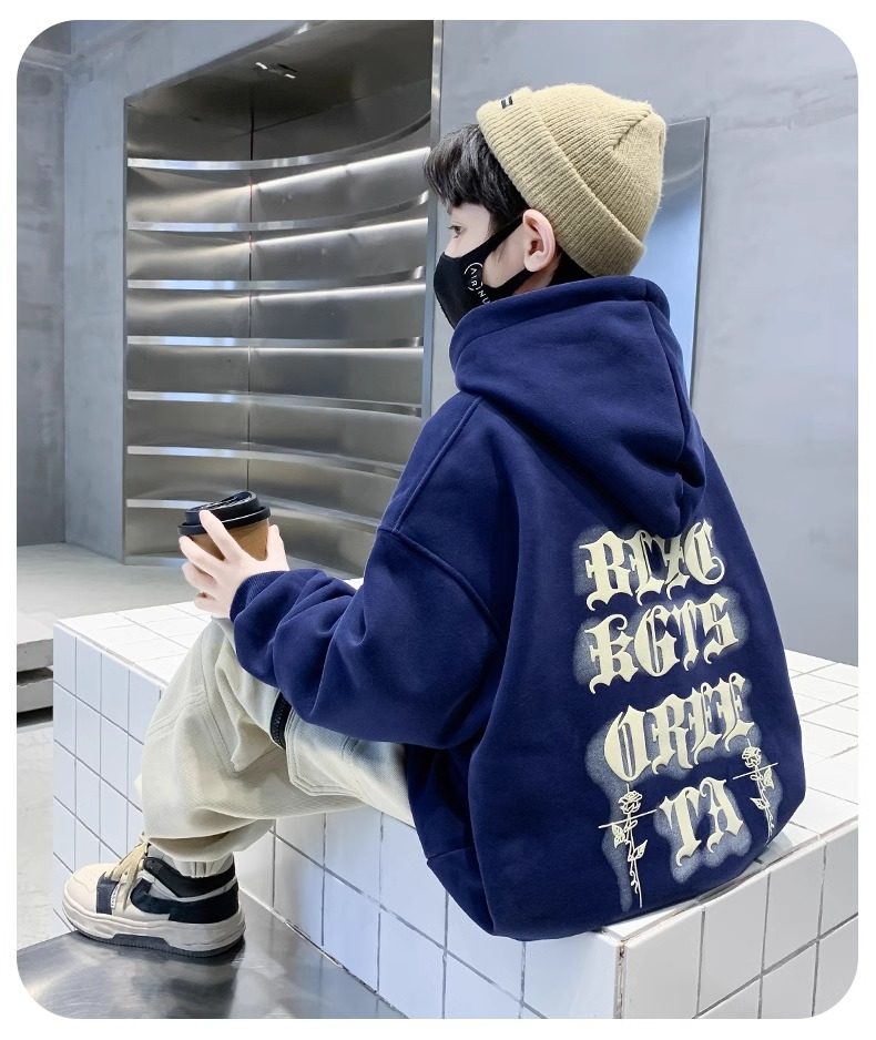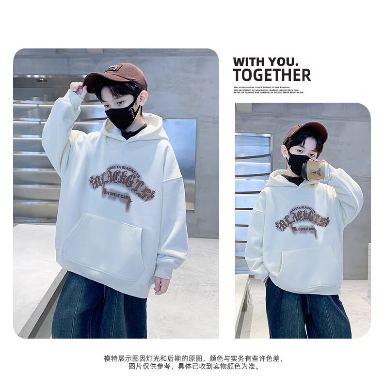 📚 华棉男童连帽卫衣春秋薄款2024儿童韩版舒适时尚红色上衣大童童装