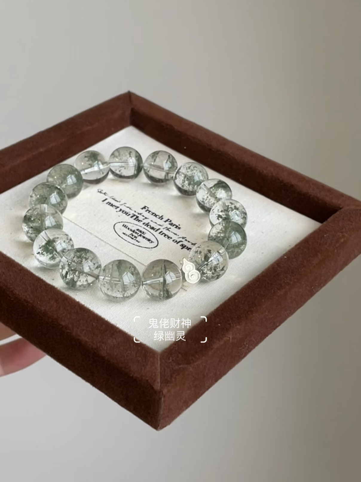 📚 【鬼佬财神】天然绿幽灵手链聚宝盆满天星招财男女款饰品水晶礼物