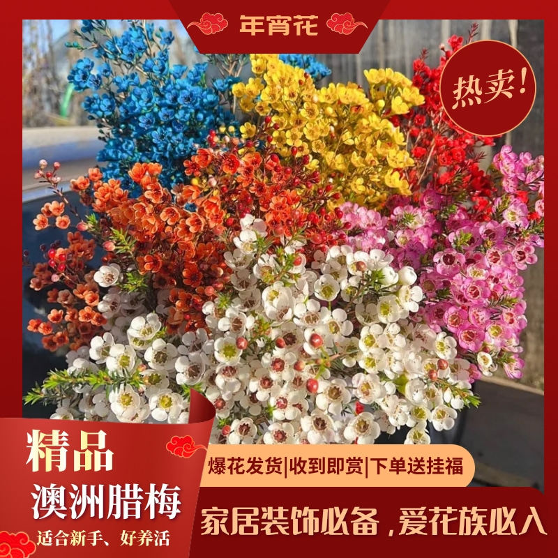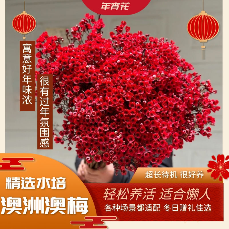 📚 澳洲腊梅花鲜花云南直发耐养红色喜庆水培澳梅插花鲜切花蜡梅花束