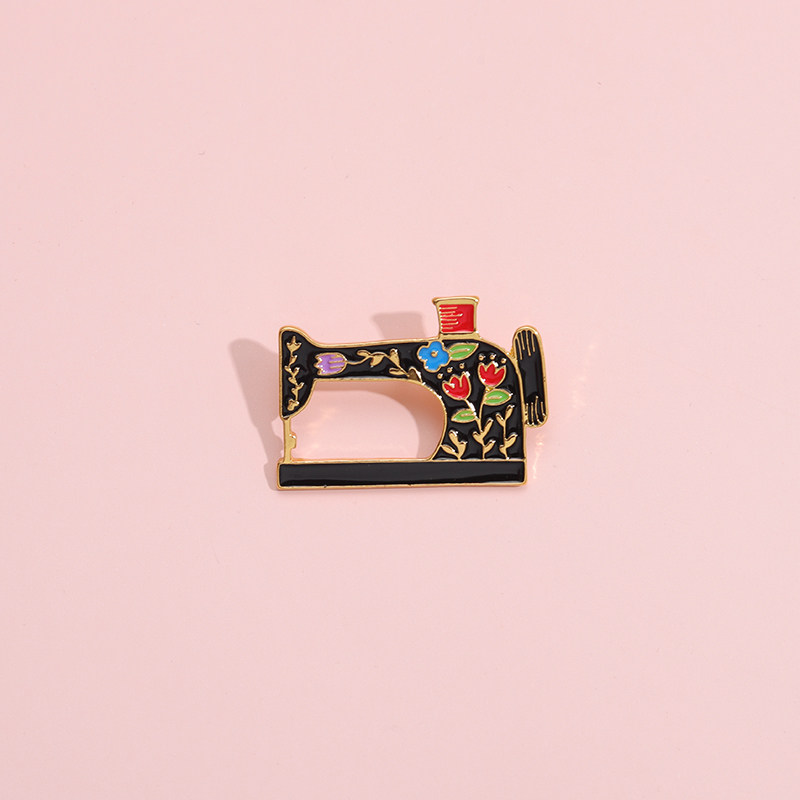 📚 复古黑色花朵缝纫机胸针设计感小众金属徽章别针配饰包包笔袋装饰