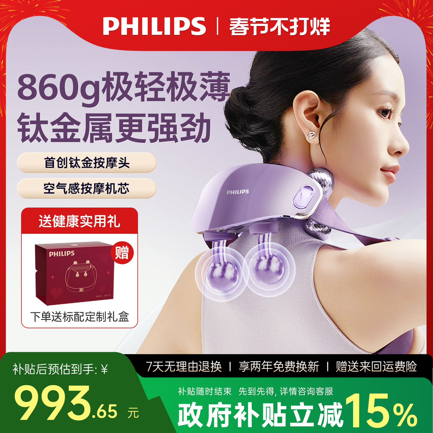 📚 飞利浦轻羽按摩仪颈椎腰背部肩颈斜方肌披肩神器新年情人节礼物