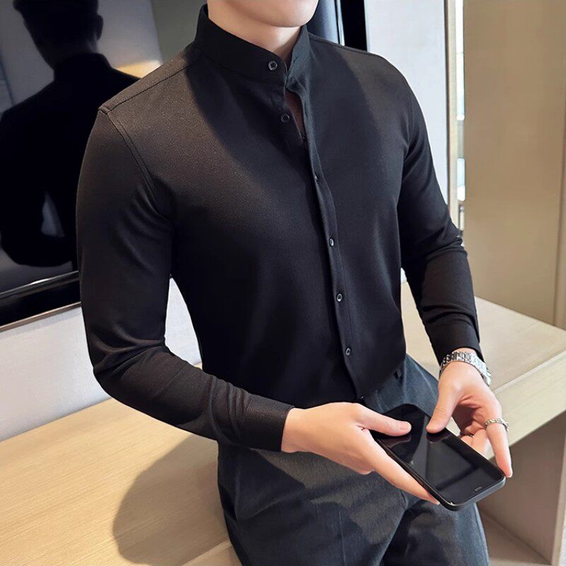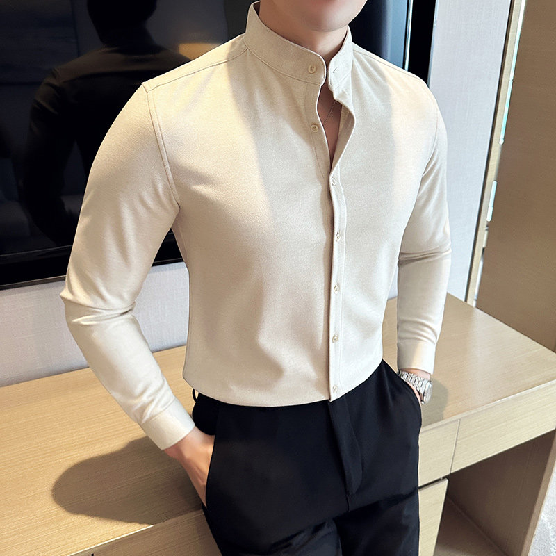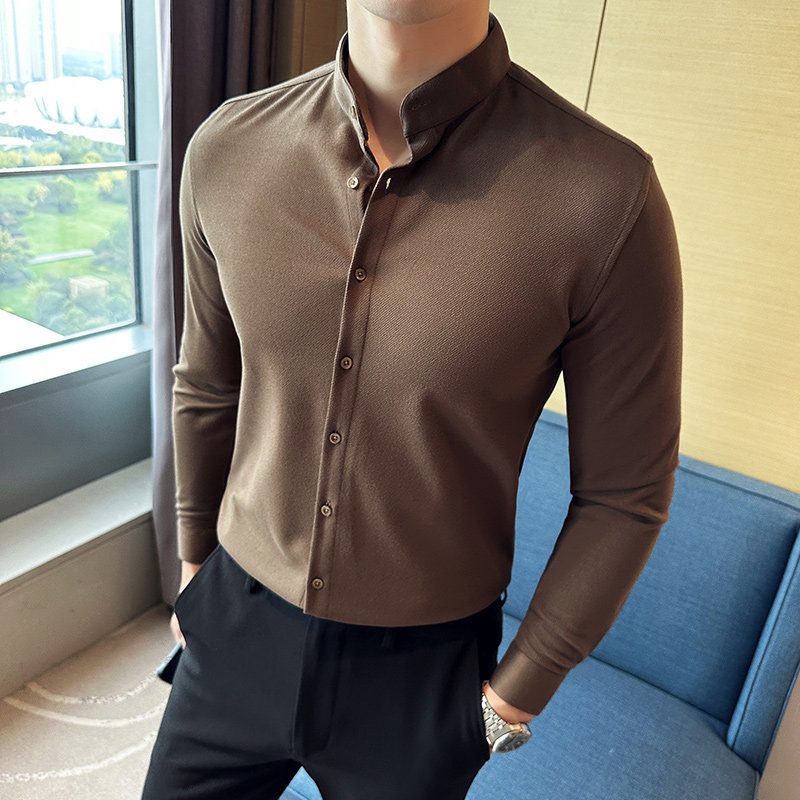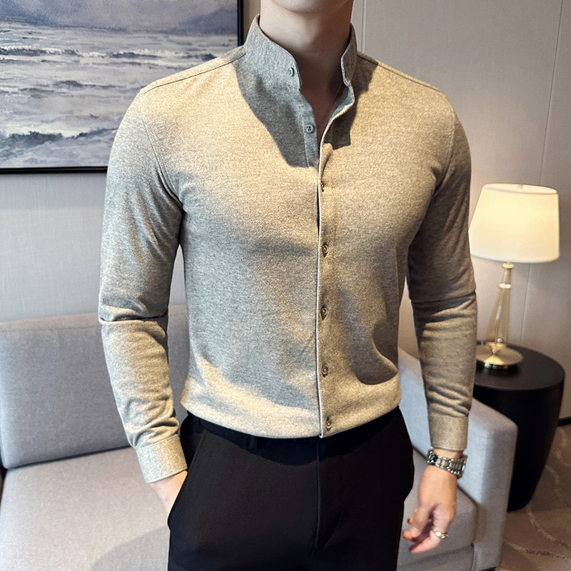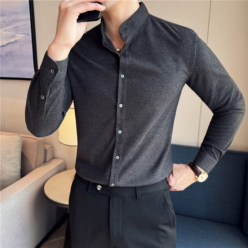📚 新中式立领毛呢衬衫男商务休闲高级感秋冬加厚磨毛保暖衬衣男修身