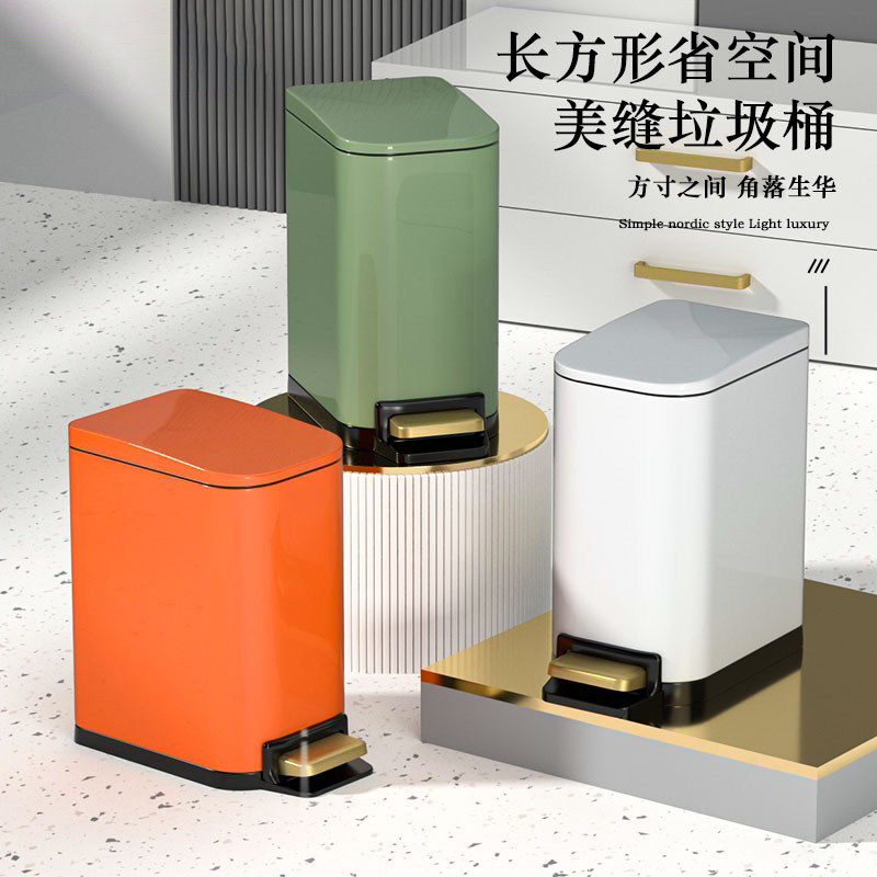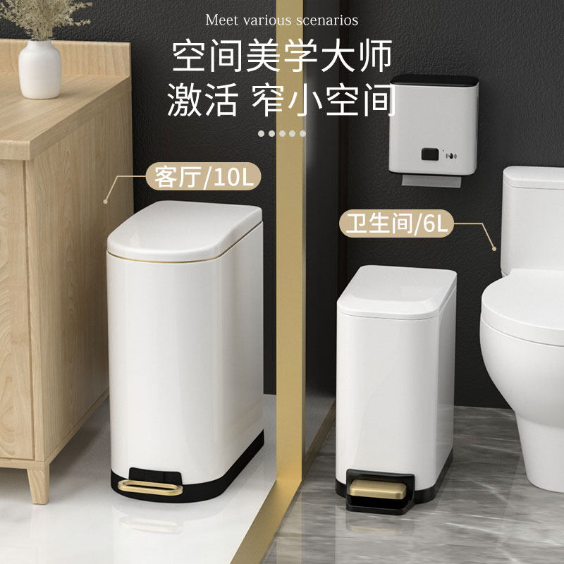 📚 卫生间夹缝垃圾桶家用客厅卧室创意轻奢带盖不锈钢脚踏式双层窄小