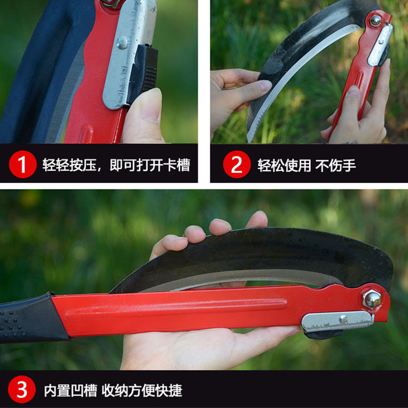 📚 农用镰刀锰钢折叠镰刀割草刀折合式镰刀备用刀片割菜刀钓鱼农具