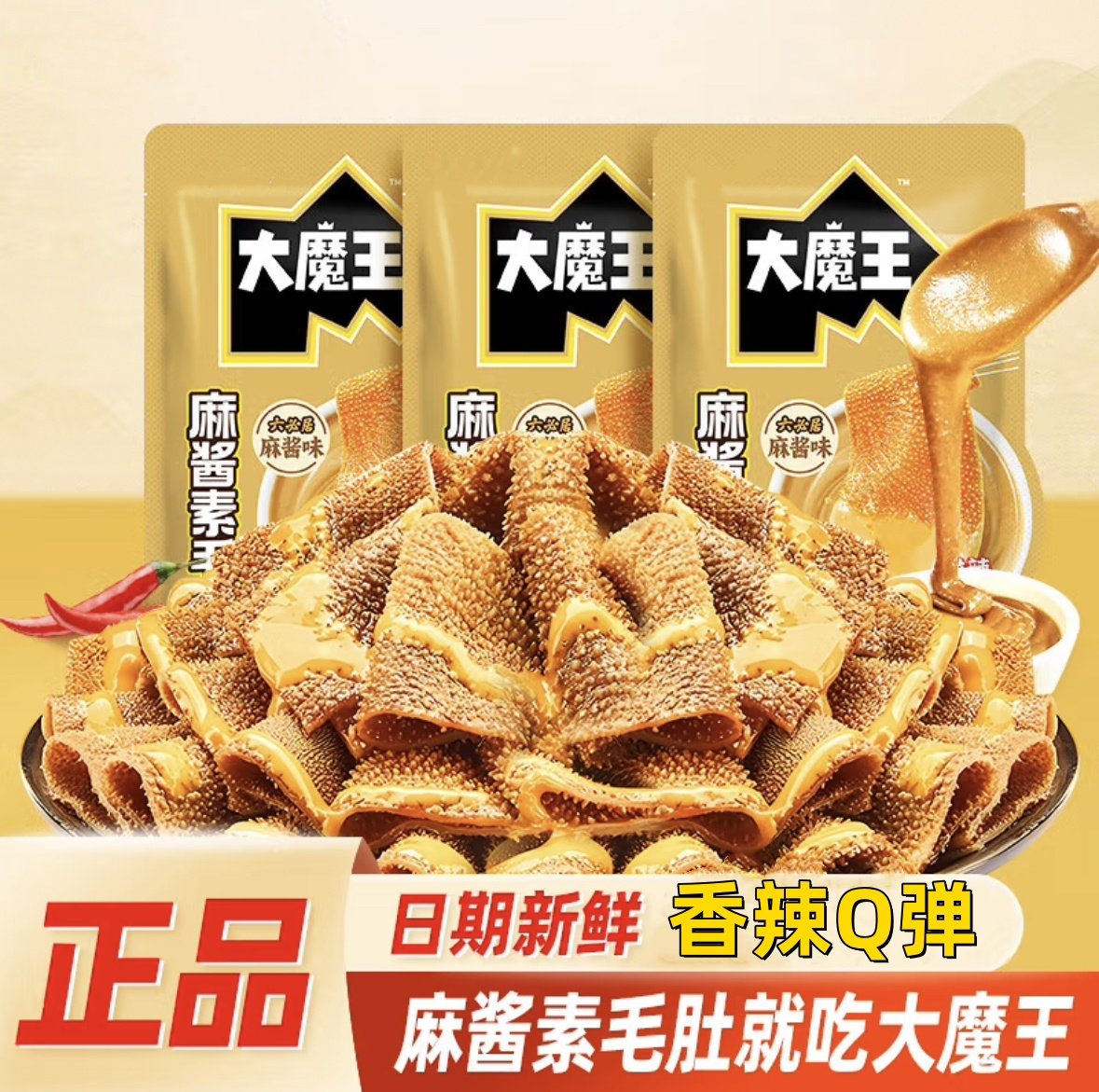 📚 大魔王素毛肚麻酱味香菜六必居魔芋爽网红小零食官方旗舰辣爽解馋