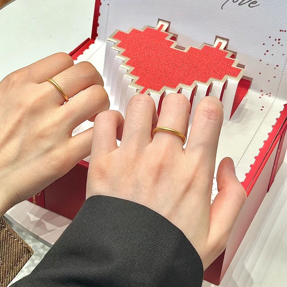 📚 新款仿真黄金素圈戒指999金包银情侣对戒指环黄金色情人节礼物