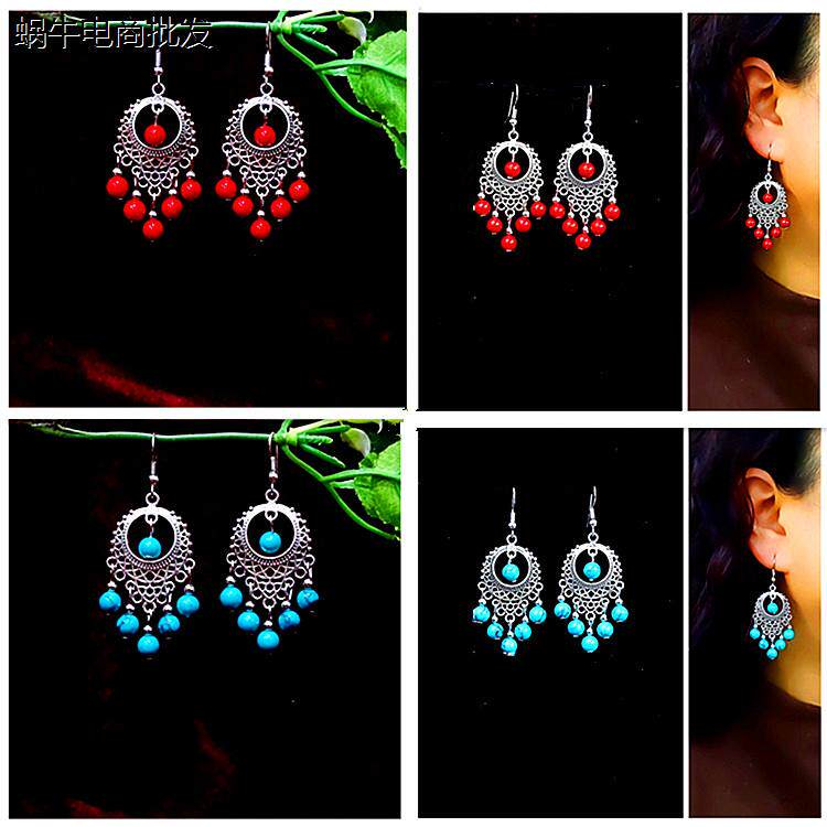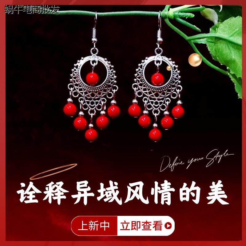 📚 民族风耳饰女纯银藏族风格耳环藏式少数民族舞蹈蒙古族耳坠藏饰