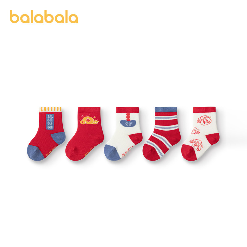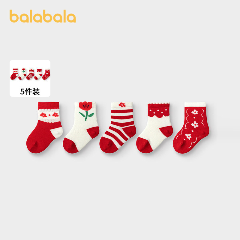 📚 巴拉巴拉宝宝袜子蛇年新款儿童棉袜男童女童小童本命年红色五双装