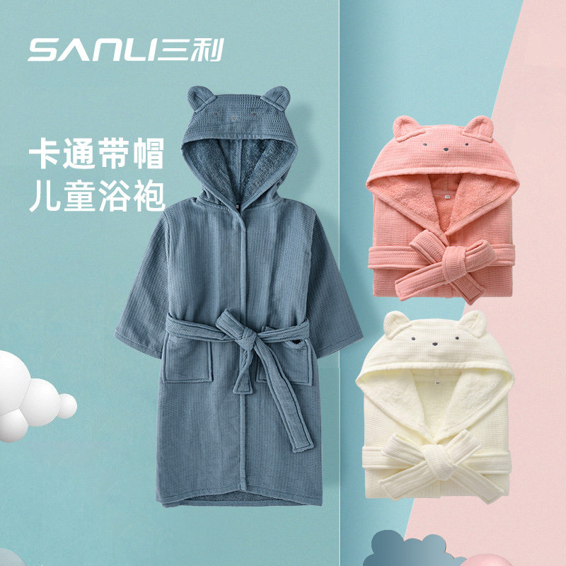 📚 三利毛巾全棉毛巾料儿童睡袍长袖带帽亲子纯棉浴衣睡衣吸水速干爽