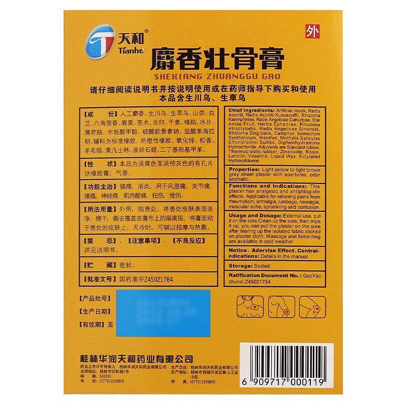 📚 天和麝香壮骨膏镇痛消炎风湿痛关节痛腰痛神经痛肌肉酸痛扭伤挫伤