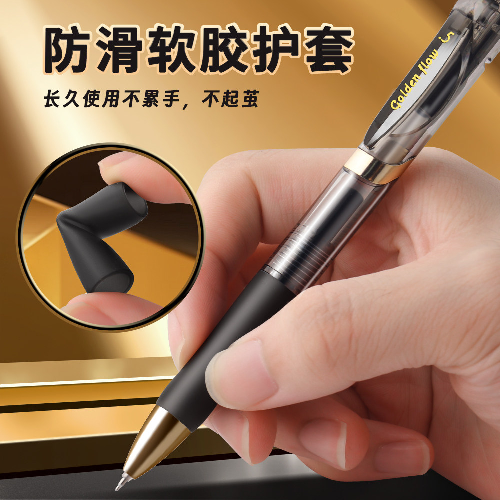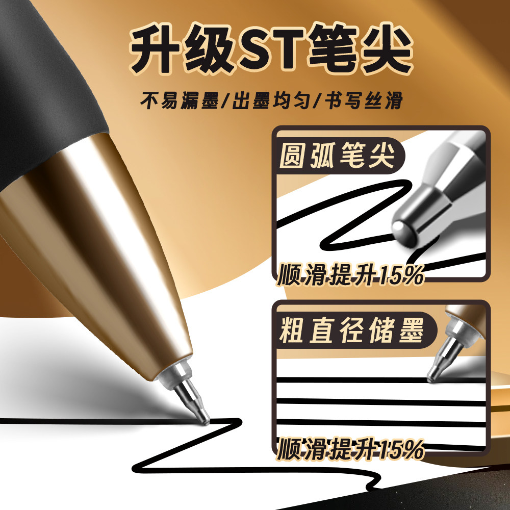📚 晨光新款K35按动中性笔小金戒学生专用碳素笔顺滑速干考试刷题笔黑色0.5mmST头签字笔经典高颜值防水圆珠笔