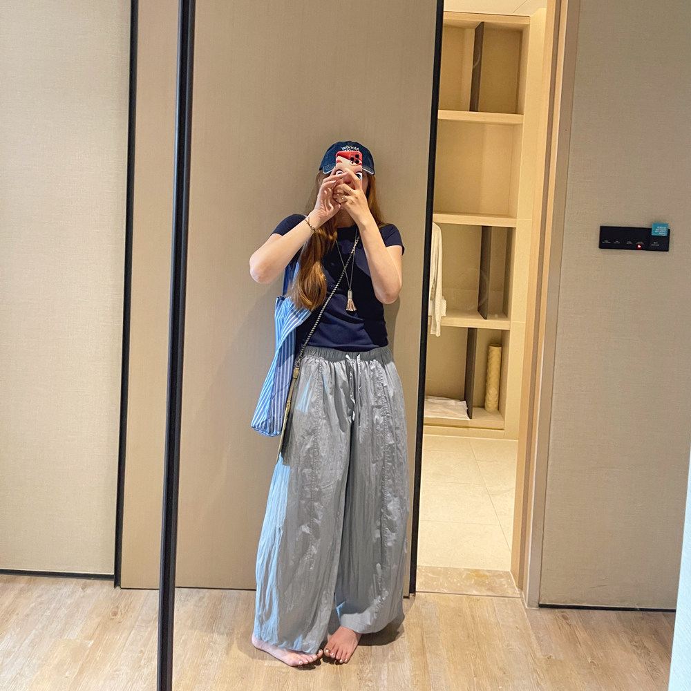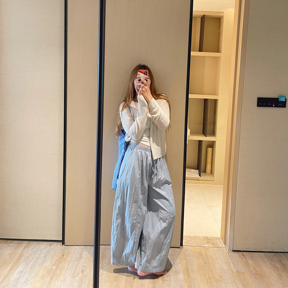 📚 KOGIRL 天然皱感轻盈面料松紧系带弧形宽松休闲裤防晒裤遛弯裤女