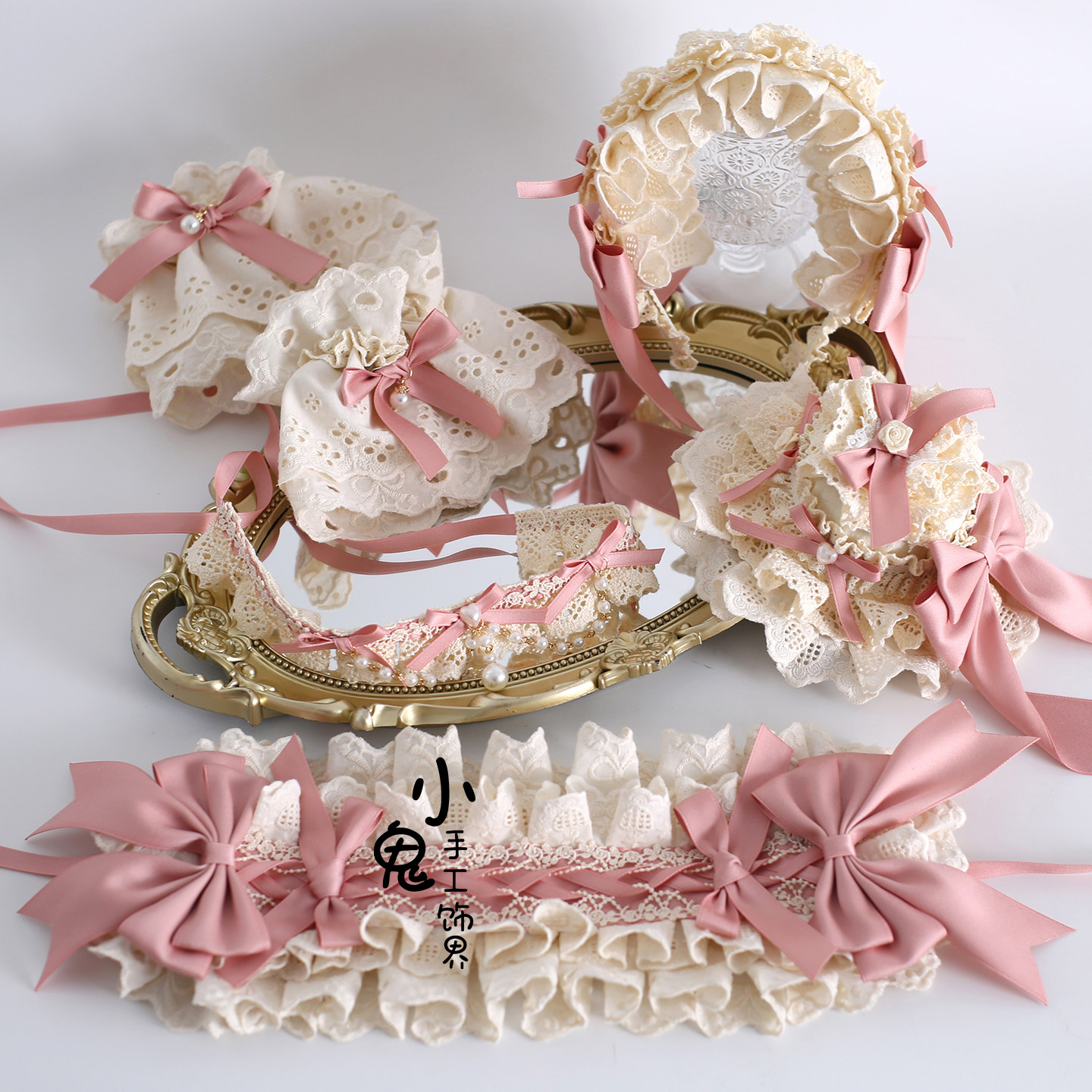 📚 原创小芙蝶礼帽手作边夹发夹项链生成色粉色Lolita芭蕾风发饰浅蓝