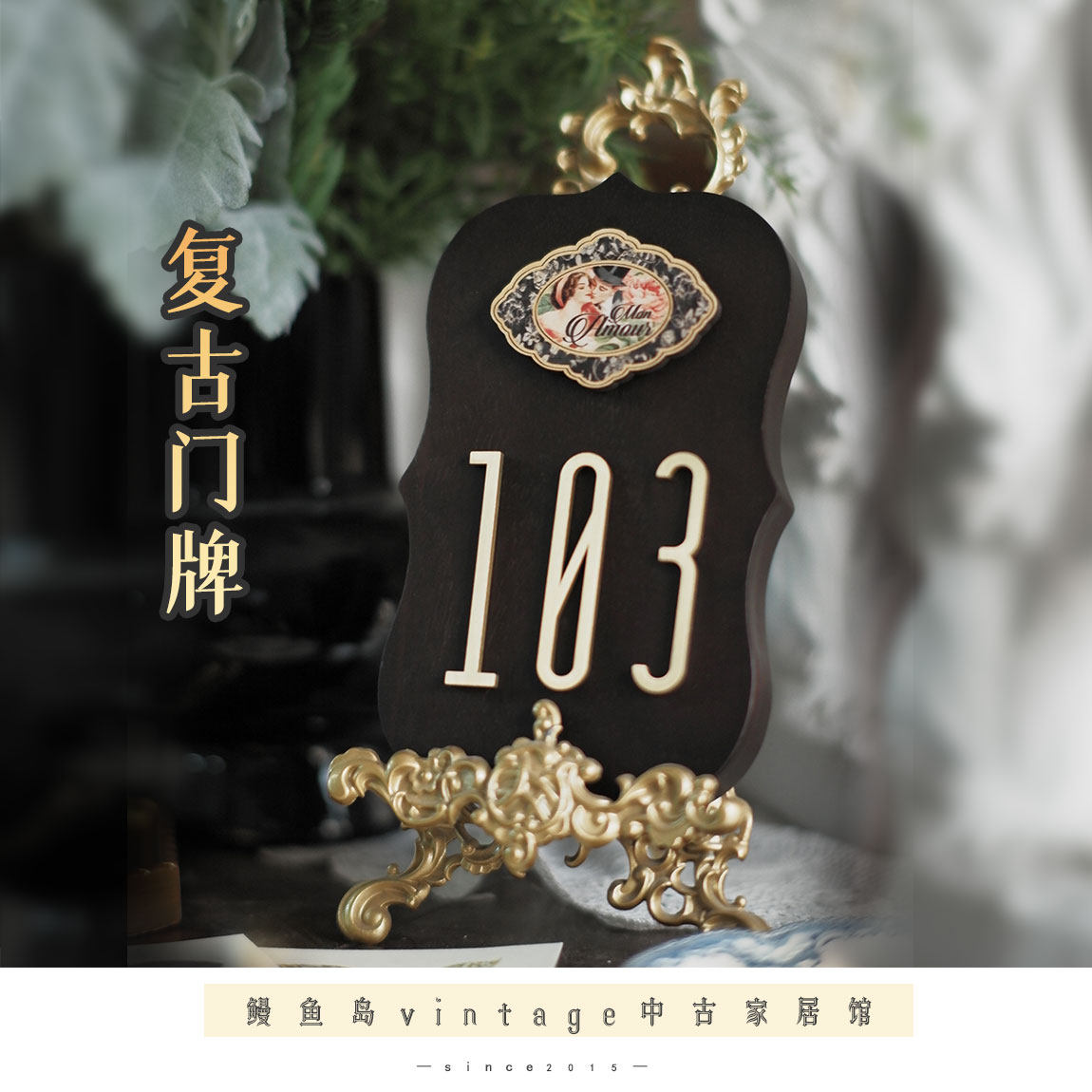📚 原创法式复古中古风门牌号胡桃木黄铜数字个性创意家用入户门装饰