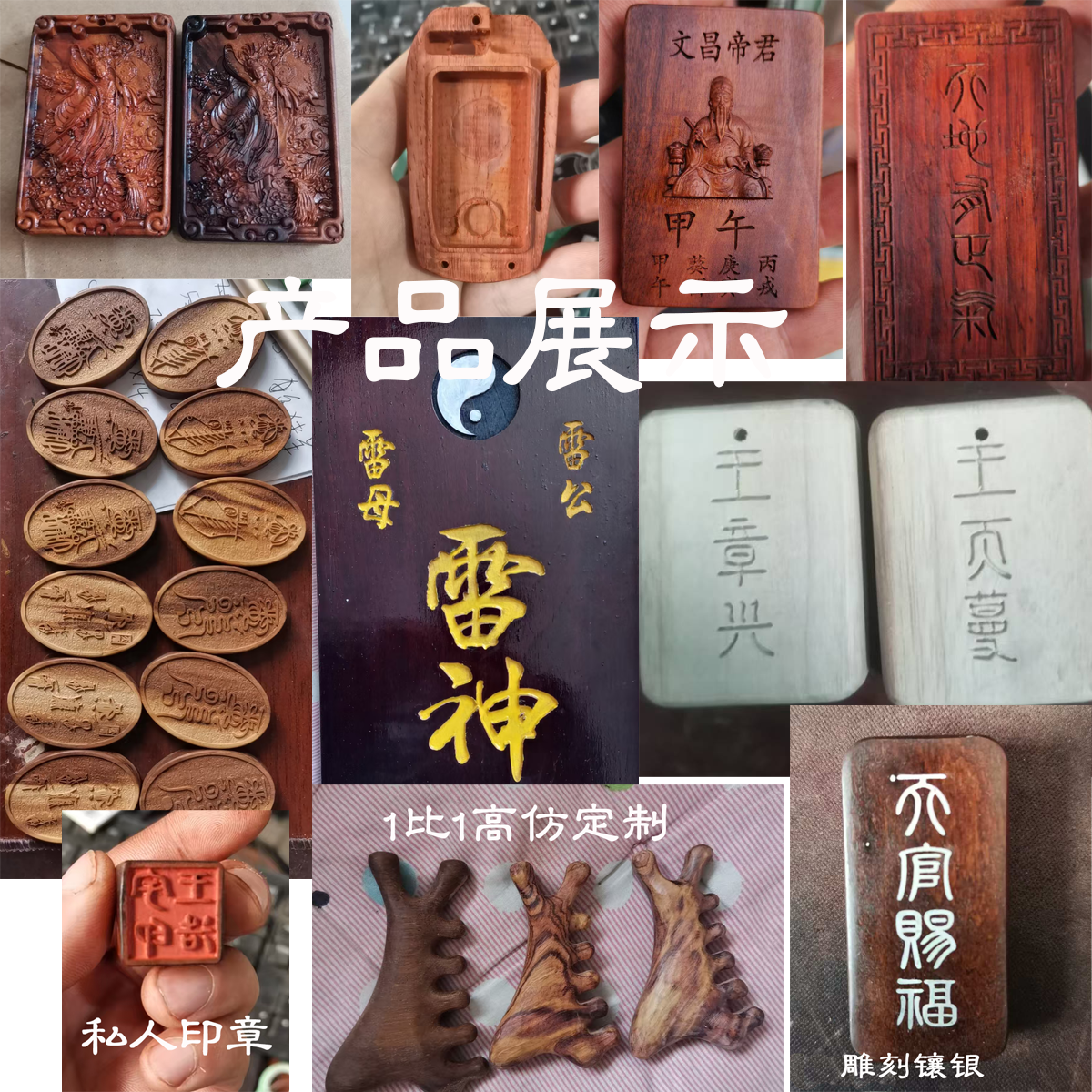 📚 定制代加工天然雷击木雷击枣木吊坠无事牌木制品木雕刻字印章沉香