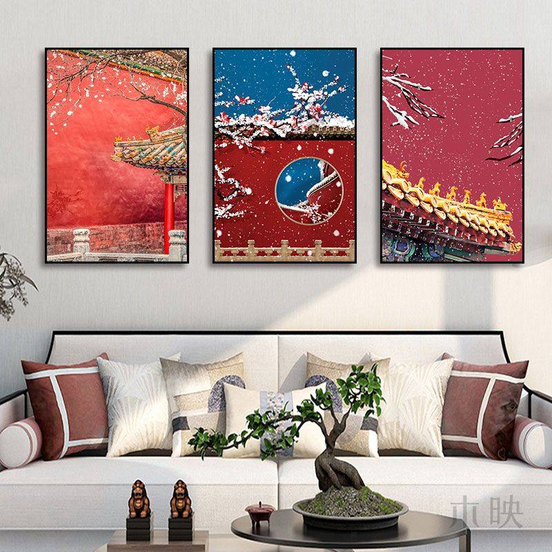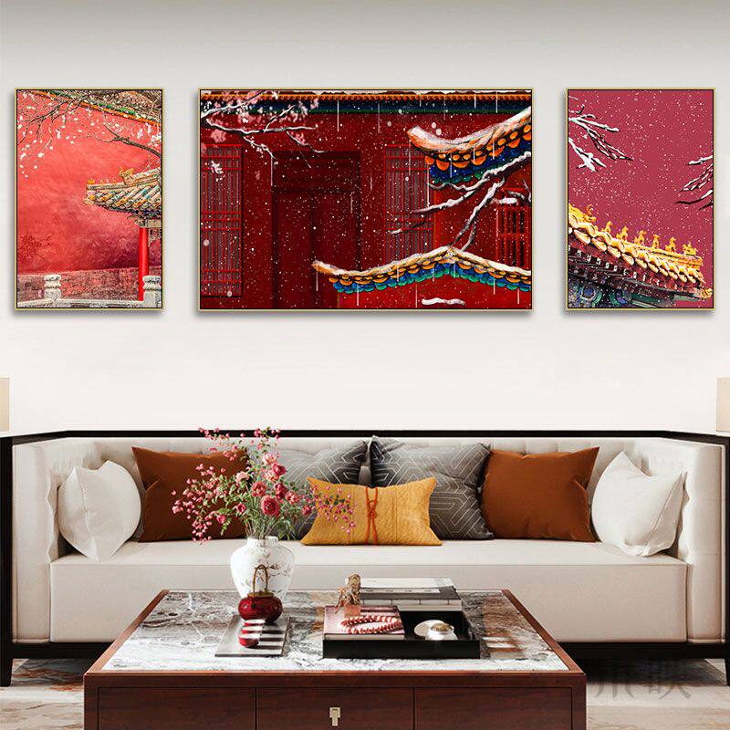 📚 中国风装饰画客厅中式饭店包间火锅店故宫风景装饰画红墙建筑壁画