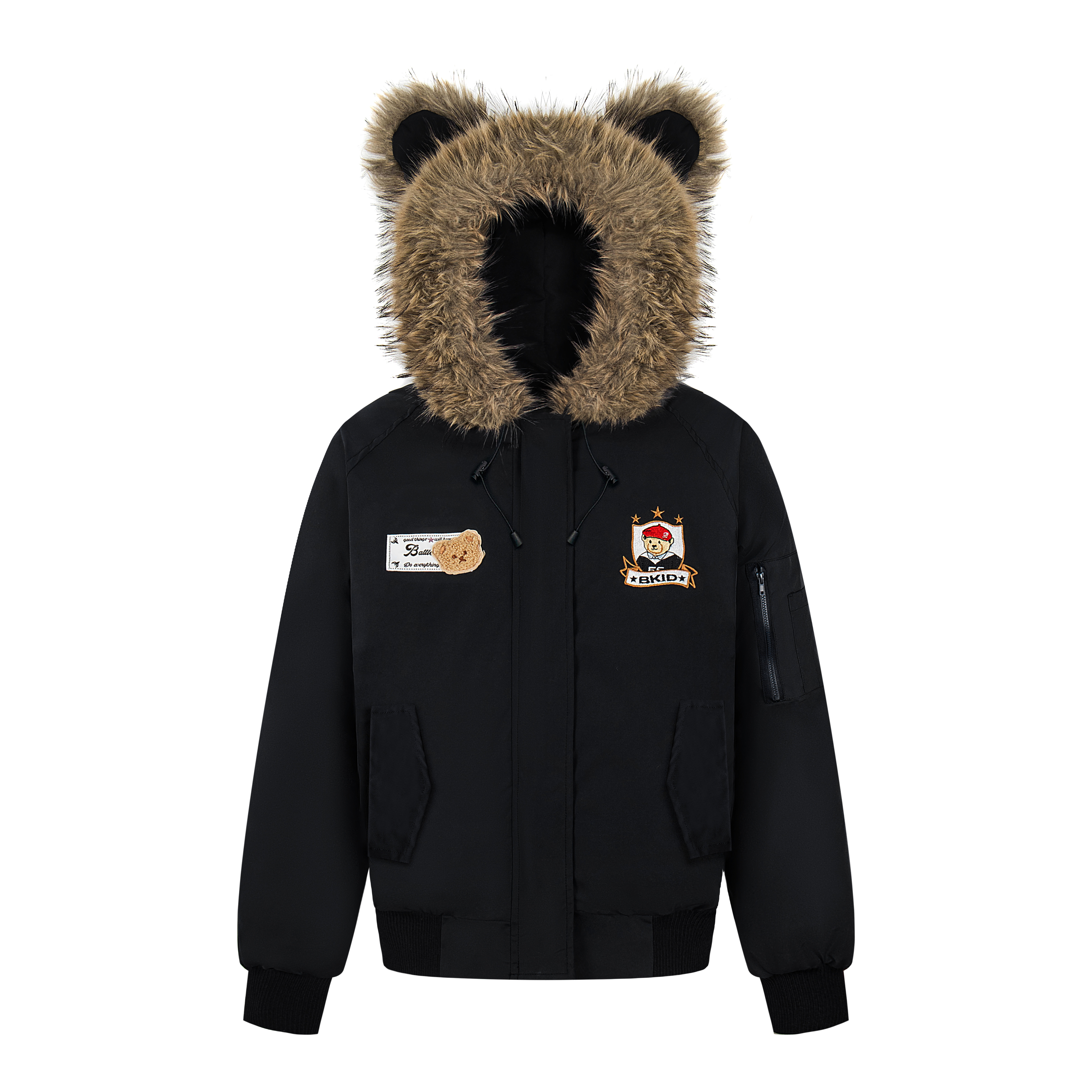 📚 文文不乖美式小熊耳朵毛领卡通外套女连帽棉服秋冬加厚保暖面包服